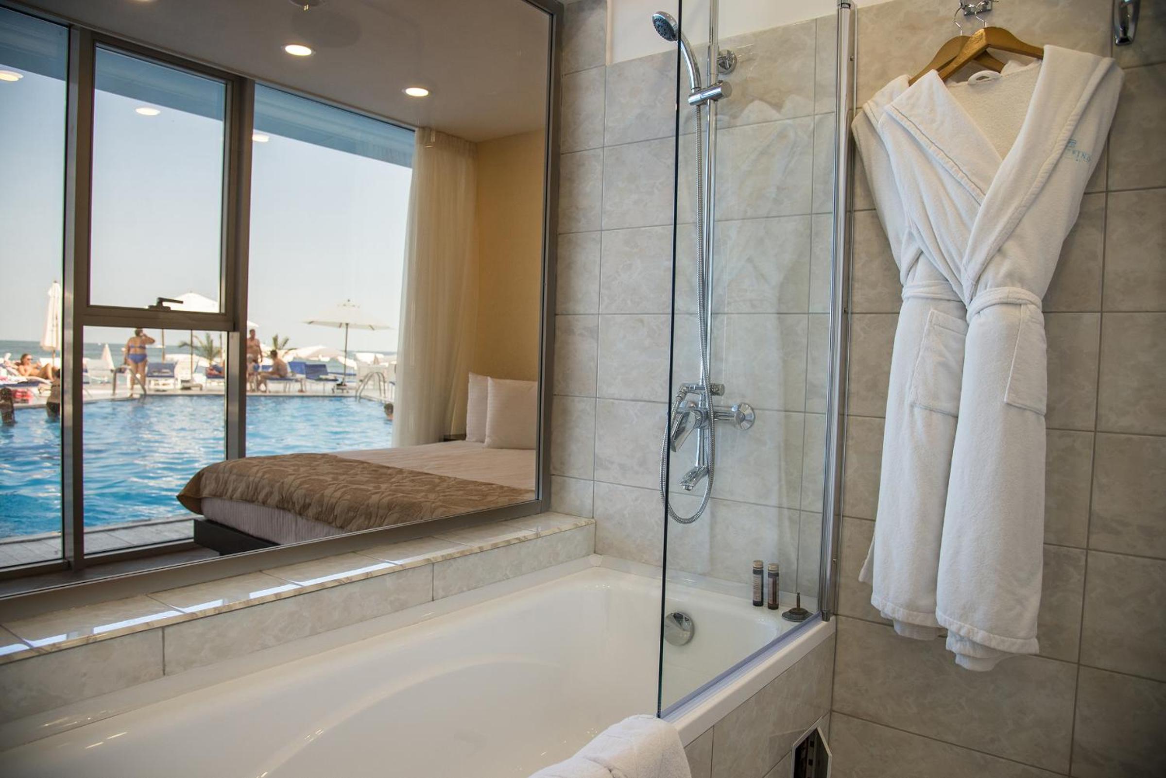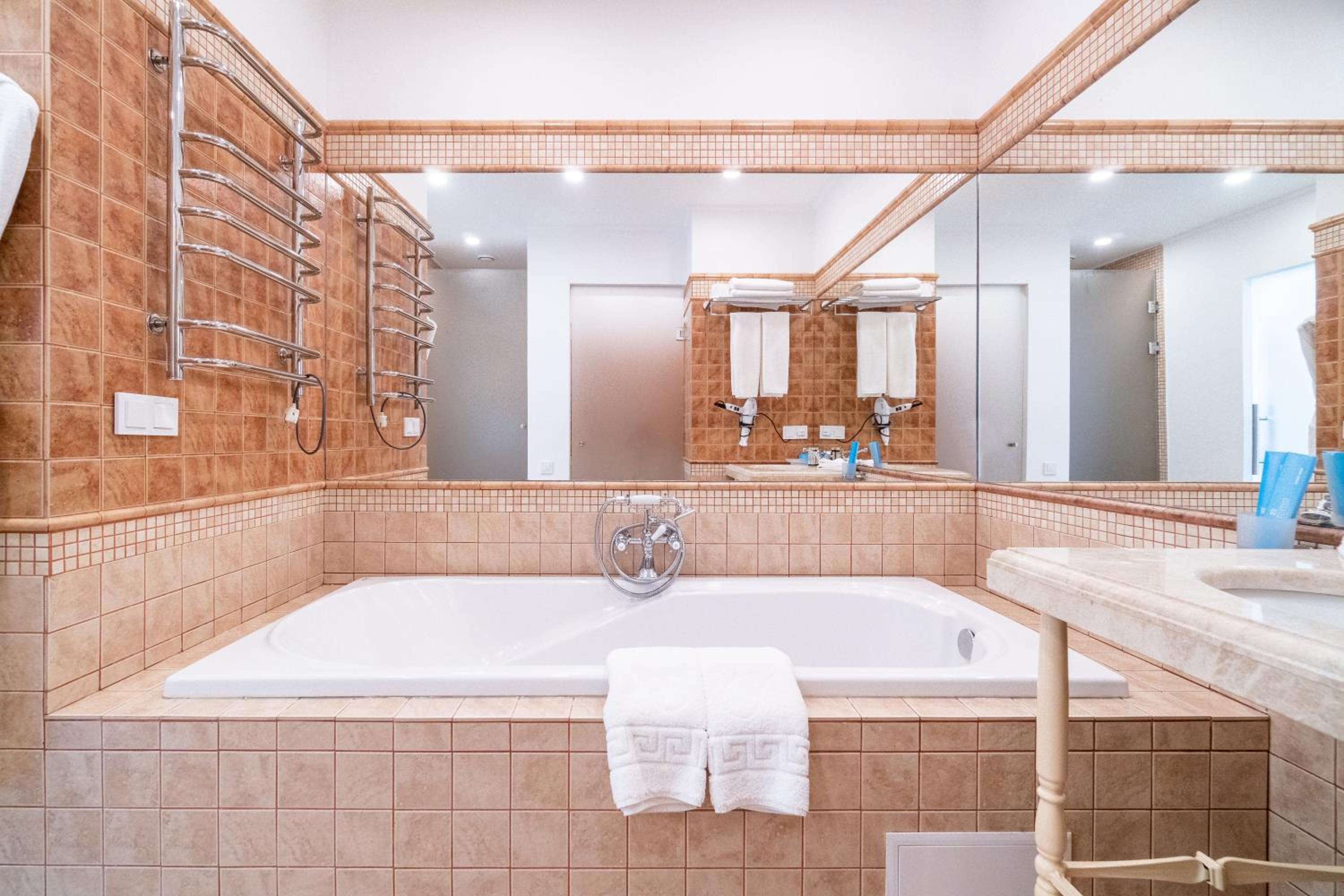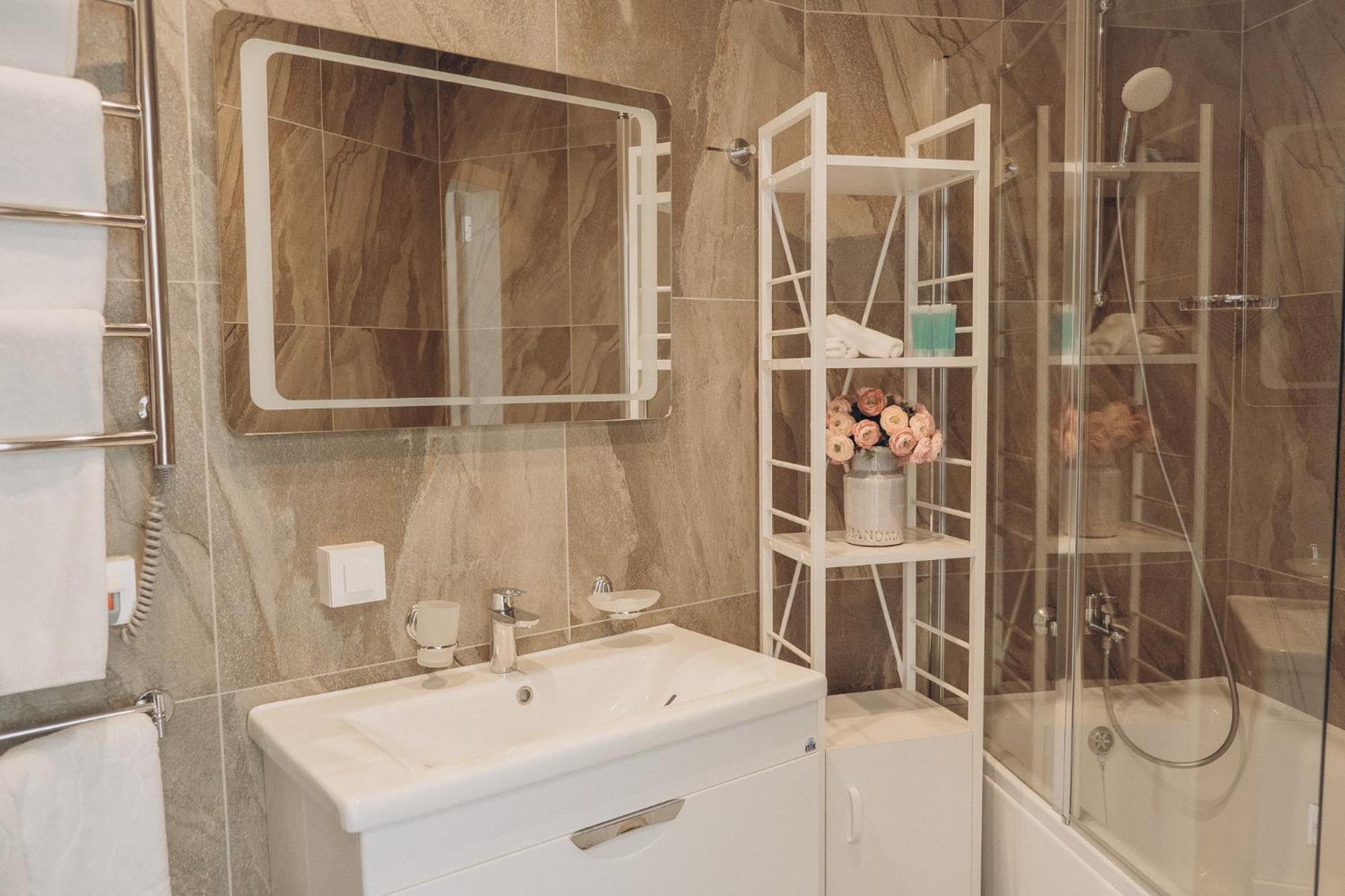 Мені надзвичайно сподобалося, що кімната дуже простора і світла, усе бездоганно чисте. Ванна кімната просто чудова: сучасна, продумана до деталей. Є можливість прийняти і ванну, і душ, є біде — усе дуже зручно й комфортно. Забезпечені всі необхідні засоби гігієни, тож я відчула себе так, ніби приїхала з дому додому.