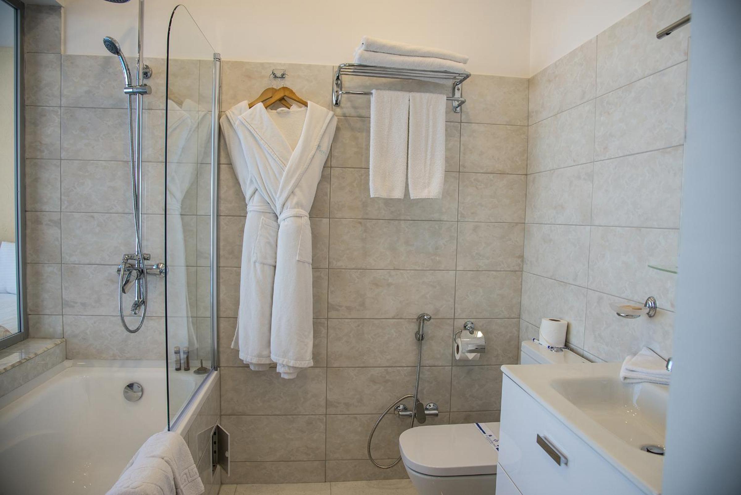 Boutique Hotel Portofino offers stylish rooms equipped with modern amenities such as flat-screen TVs, free WiFi, and minibars. The elegant bathrooms feature luxurious bathrobes and slippers, ensuring a comfortable stay for guests.