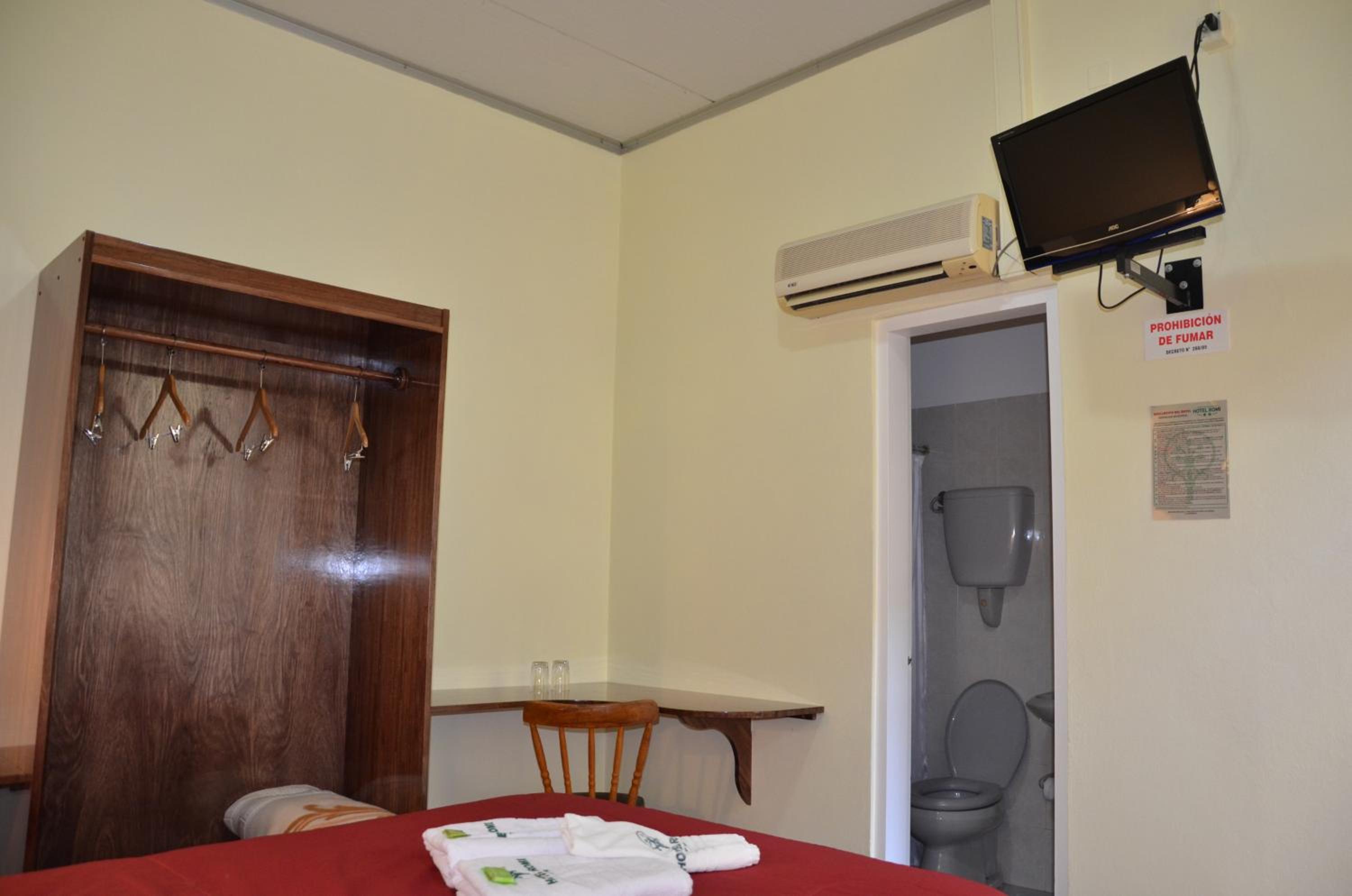 Guests at Hotel Romi can relax in rooms adorned with simple, home-style decor, equipped with heating, cable TVs, and private bathrooms for ultimate comfort during their stay.