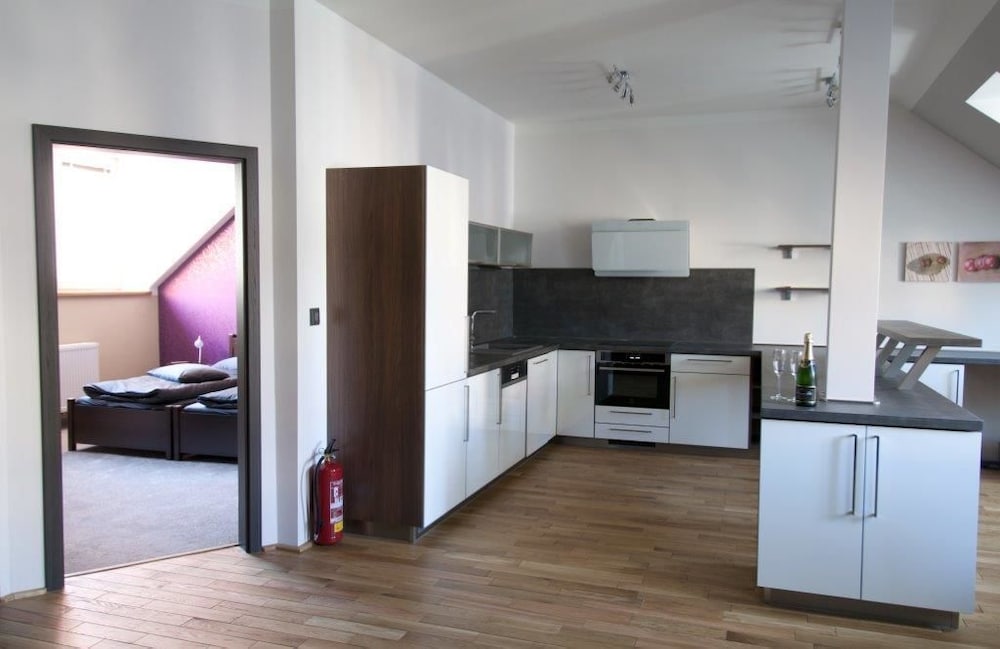 Celá budova, ve které apartmány jsou, je stylová a výborně zrenovovaná v původním stylu. V místě je skvělá restaurace, kavárna, muzeum Becherovky a zmiňované apartmány. Jsou velmi prostorné a skvěle vybavené. Dokázal bych si přestavit, strávit zde několik dní. Cítili jsme se zde skvěle.
