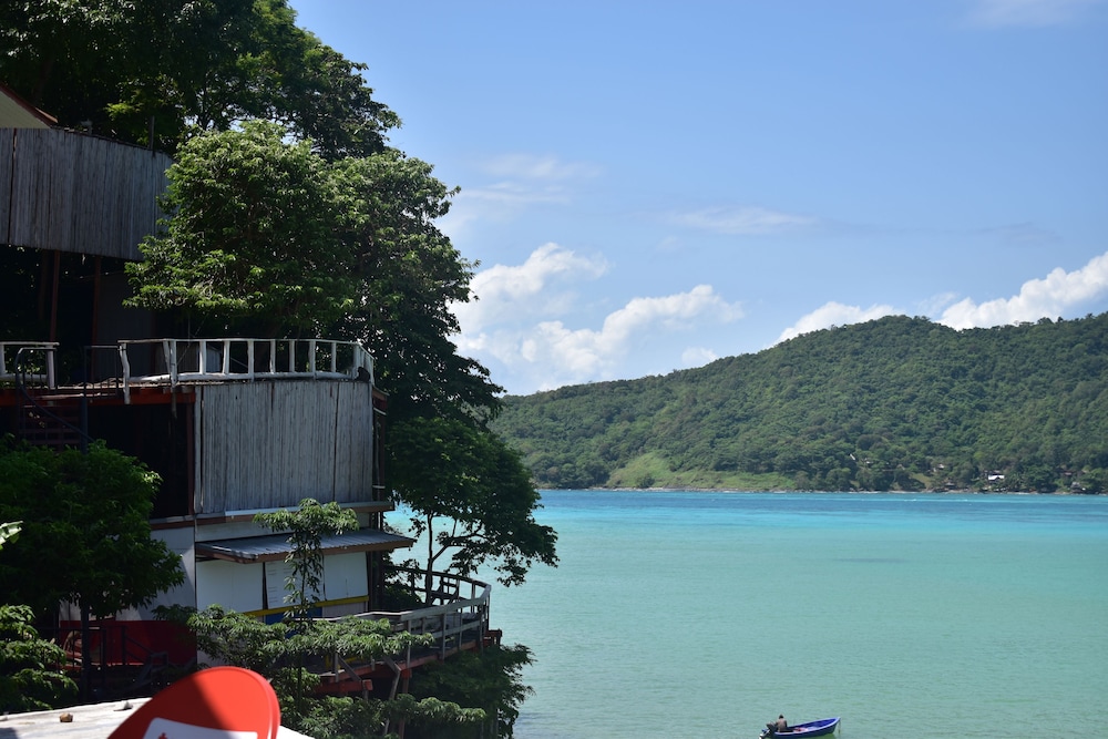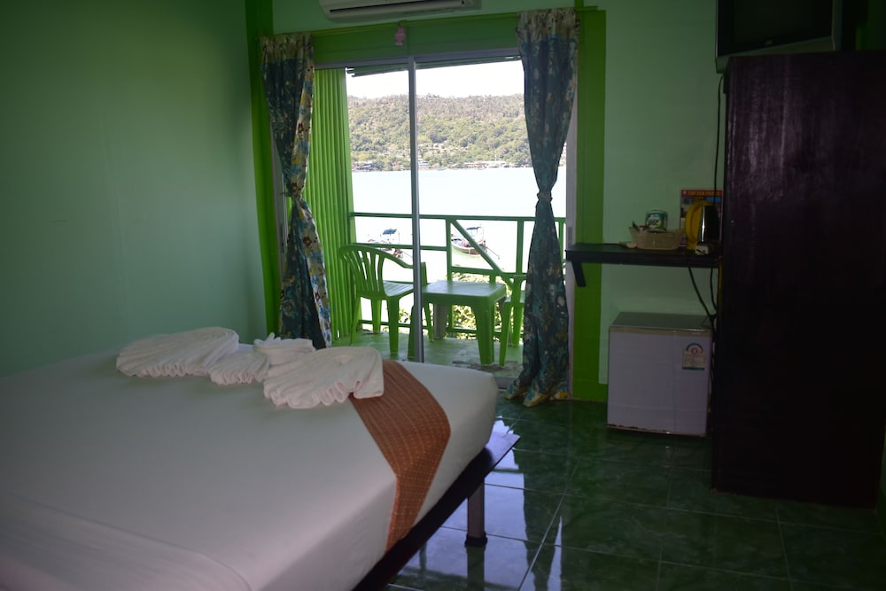 The view from the terrace of the bay was great, but everything else was not. The room was very basic, and was not cleaned once. For some reason we had to change rooms after our first night, which was pretty annoying, luckily the second room upstairs was a bit nicer and had the terrace. The guy on reception tried to sell us the Maya Bay boat trip literally every time we walked past reception, which was soo irritating! Do not book the boat trip with him, it is 200 baht per person cheaper if you book in town, we paid 250 baht pp. there was a messy construction site right next to the hotel. The hotel gets raided by a group of monkeys, which is pretty scary! Our only positives are, you get wifi in room, can use there kayak for free and the view across the bay.