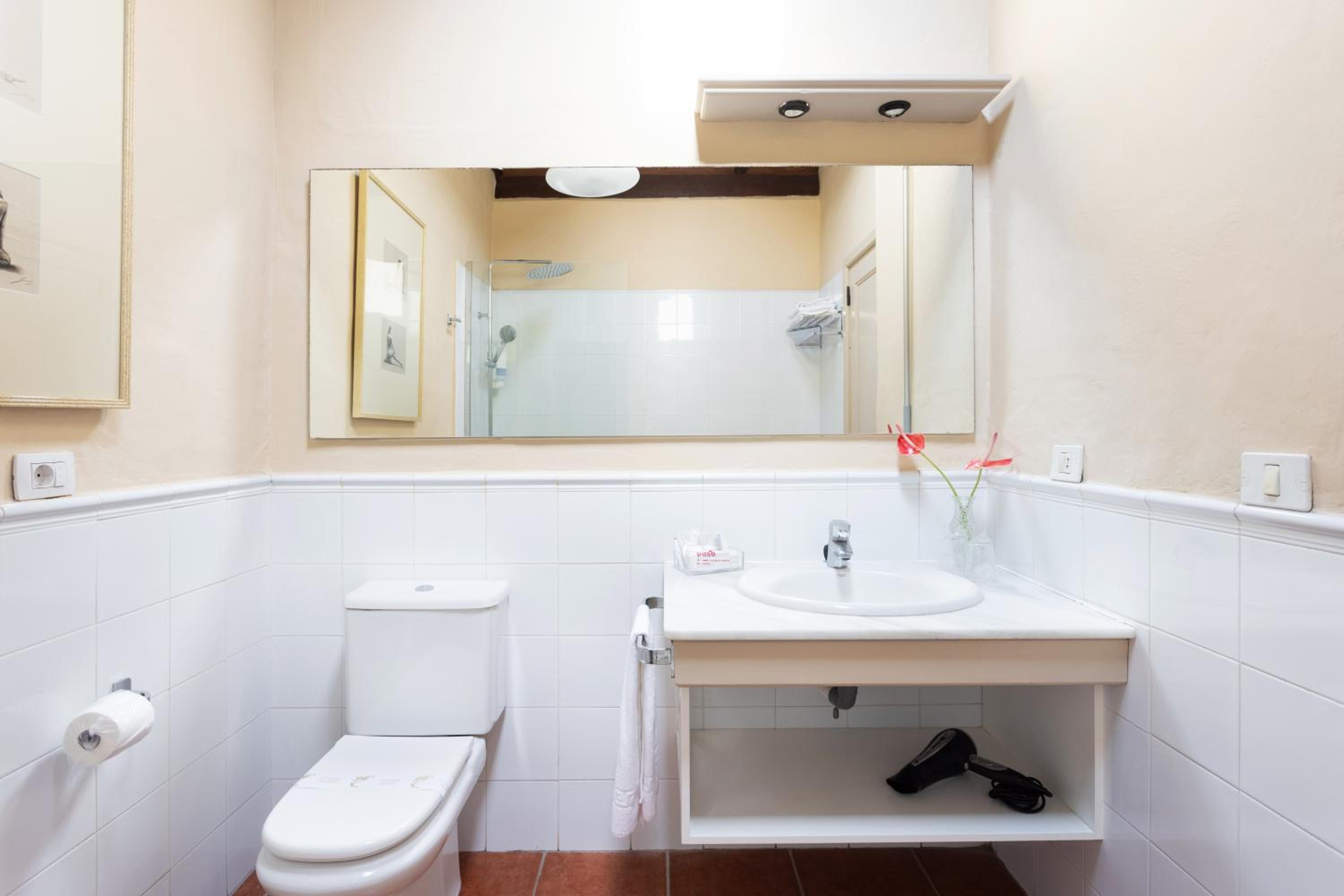 The hotel's country-style rooms on the ground floor provide a cozy retreat, equipped with modern amenities like free Wi-Fi, private bathrooms, and some boasting private terraces for a touch of luxury.