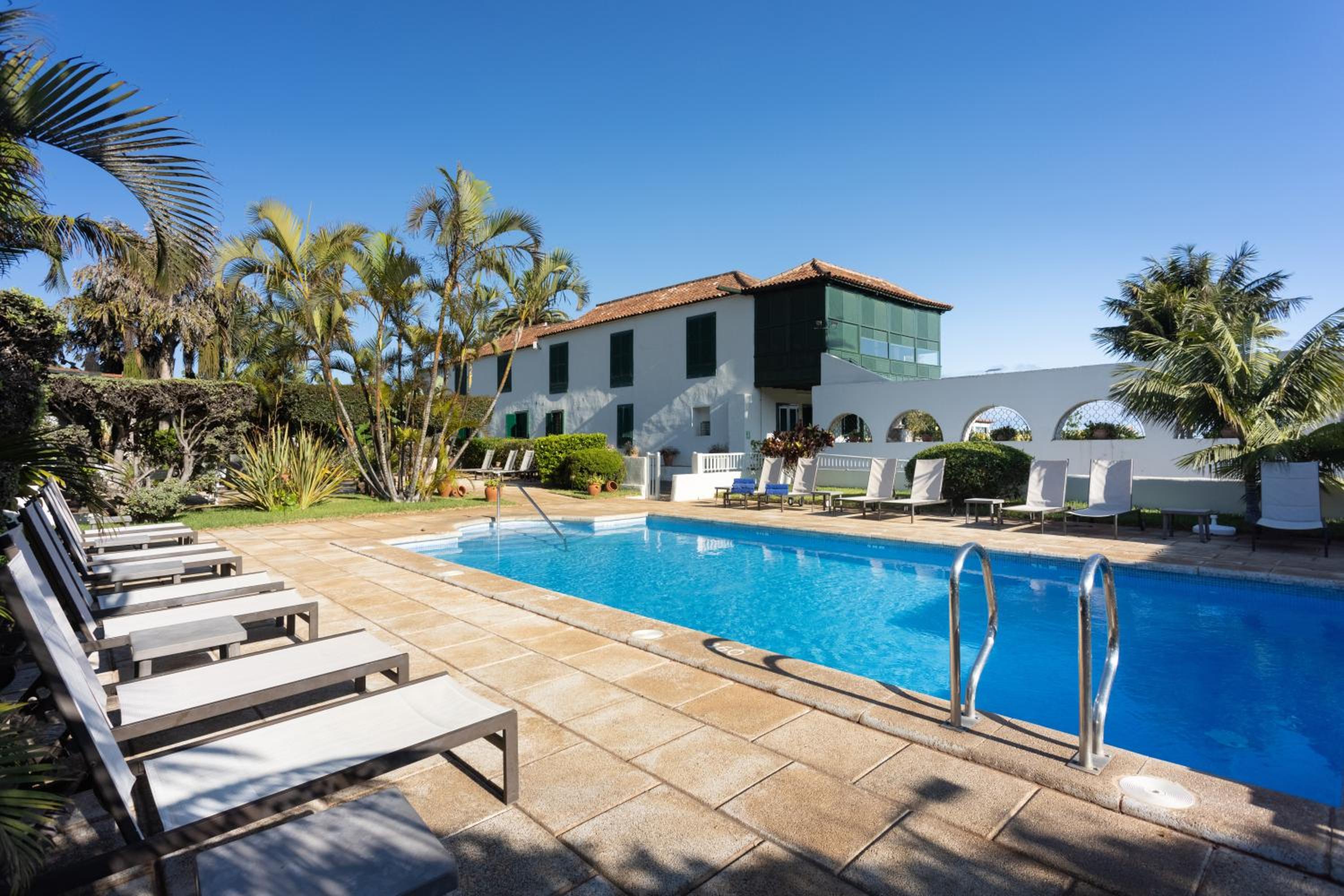 Nestled in Tenerife’s Isla Baja area, Hotel El Patio offers a serene escape within lush gardens, complete with an inviting outdoor pool and a tennis court for active guests.
