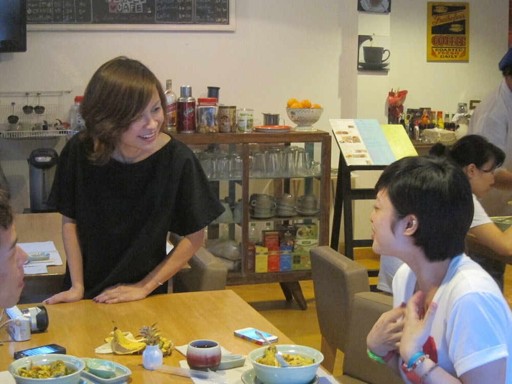 Location just outside old city walls but close to major shopping mall and many small food outlets catering for traditional and expat tastes.