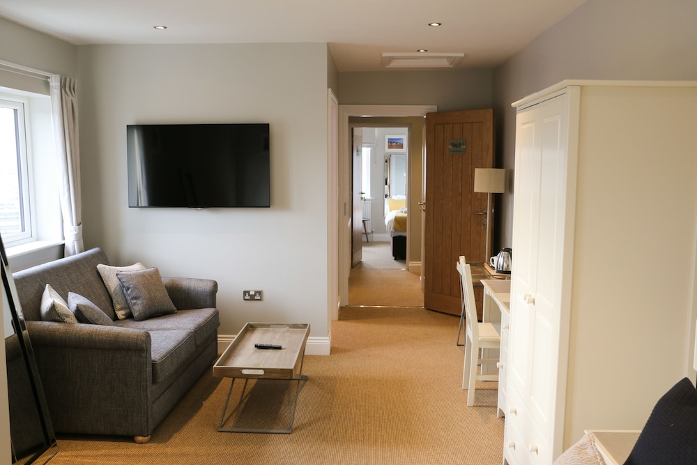 The booking was made through Expedia with filters applied for 4 star hotels. There was a sign on the property indicating 4 star Inn. The sign was probably 20 years old or more. This is a pub with some letting rooms. Ours was in a converted outbuilding. Billed as a luxury double with garden views. The room was cramped, a double bed, 2 bedside cupboards, one bedside lamp. A dressing table with one chair, tea and coffee facilities. There was no wardrobe only an understairs alcove with a short hanging rail and 4 hangers. The door to the bathroom was swollen and needed a shoulder barge to open and close it. The toilet roll holder was hanging off the wall, etc. The bedroom carpet was badly stained in places. The 2nd night someone was in the room above and could be heard moving around - in fairness that could have been a lot worse. The garden is non existent; 3 rooms share a small fenced area with 3 trestle table and bench sets that have seen better days, set on a few paving slabs with gravel surround. Beyond the fence is a children's playground. The bed was comfortable and linen and towels clean but no one came to clean and tidy the room between nights. Breakfast of scrambled eggs and bacon on toast was fine but served in a cereal bowl! Coffee was dire. Try the Coastal Cafe in town which opens at 9. Internet service was poor and intermittent. You have to walk past smelly bins at the back to get to the rooms. In short this was far from a 4 star hotel although priced much the same.