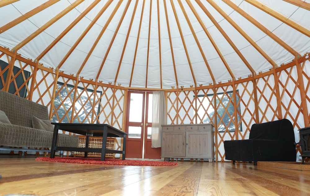 We stayed in the small yurt for 2 nights, and absolutely loved staying here. After a day out hiking, visiting beaches and getting exhausted in the February rain, we were so pleased to come back to a cozy yurt with a warm fire and comfortable futon bed. We brought some homemade soup from and were able to easily cook this inside on a pot on the fireplace. I would definitely stay here again. It was wonderful to disconnect and be by the waves. The yurt comes with blankets and pillows, but we brought some from home. The drive down the windy path was totally safe, even in pitch black with the rain pouring. I loved every minute being here. Bathroom facilities are a short walk across the way. They were clean and no problem to access in the dark with a flashlight.
