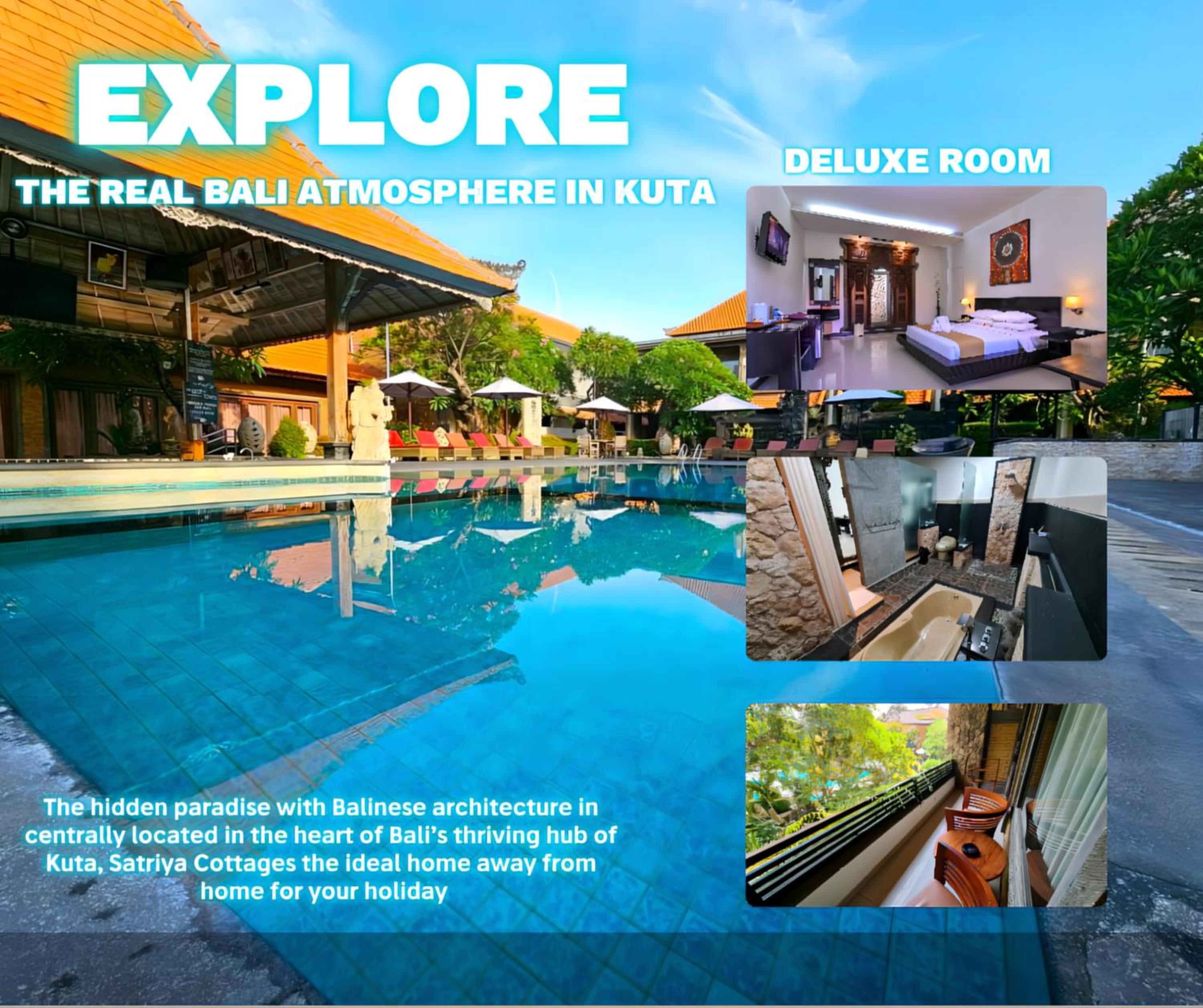Experience the charm of traditional Balinese design at Satriya Cottages, nestled in the heart of vibrant Kuta. Just a stone's throw away from the stunning Kuta Beach, our cottages offer a blend of culture and comfort.