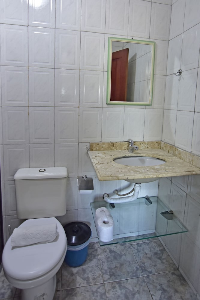 Pontos negativos: Pedi um quarto arejado e ventilado, pois tenho rinite alérgica, mas disponibilizaram um quarto em que a janela sequer abria. O banheiro está em péssimas condições, não tendo lugar para perdurar a toalha e com a tomada estragada. Minha esposa teve que usar o secador de cabelo fora do banheiro, sem espelho. A pia é muito antiga, amarela e muito pequena. Tivemos que solicitar a troca dos lençóis duas vezes, pois vieram sujos. As fotos da internet só mostram as melhores partes do quarto, não tendo nenhuma foto do banheiro, de modo que a impressão que temos quando chegamos é de que se trata de um outro hotel. Em resumo, o preço cobrado pela diária é incompatível com as condições do quarto, em especial do banheiro.