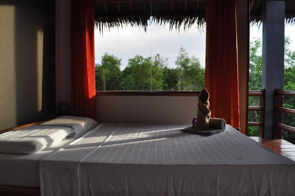 Short walk to town, good to stretch legs but you may feel uncomfortable as a solo traveller as it is on a back road. Having said that they offer a free ride in the evening. The staff were friendly and the bungalow basic, but rustic as expected. The view from the veranda of coconut tree was pretty however having a leaking sewer on the garden next to us was fairly gross!