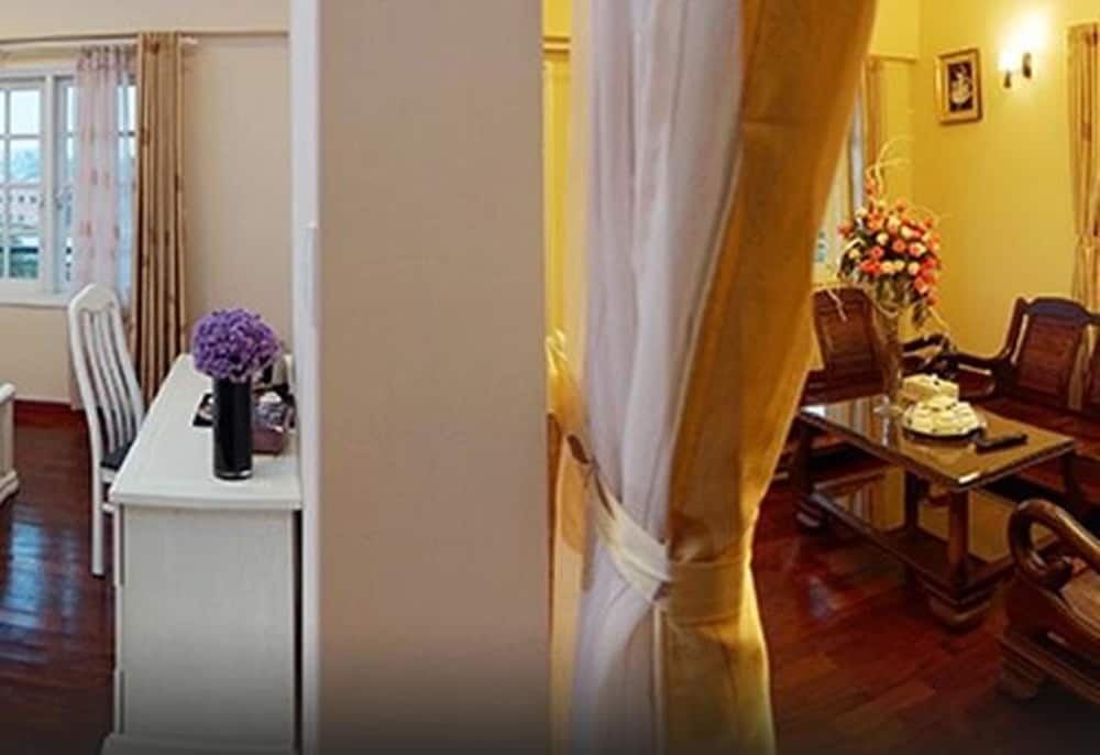 Nice unusual place to stay in vietnam. It's a 5-8 minutes drive to dalat city center, but being outside its very very quite. Rooms are huge and very old French style.... It has its magic.Staff was nice and they arranged us the bus back to nha trang and taxis. Language was an issue at the beginning, but with a bit of patience we sorted it out. The breakfast was simple but nice and good quality and the breakfast room is sort of below the main hall but overlooking the beautifully well maintained garden and pond. As others mentioned, the hotel has its years and you may hear a few noises here and there when people walk on the corridor, but in my experience it was quite silent in general.... Below the vietnam average! :)