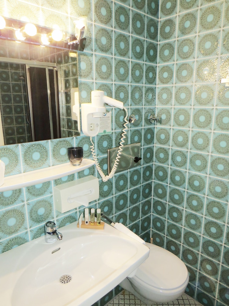 Friendly reception. Reasonable room, with shower but no bath. Room at front was noisy with window open (essential in warm weather), but quiet enough with window closed and shutters down.