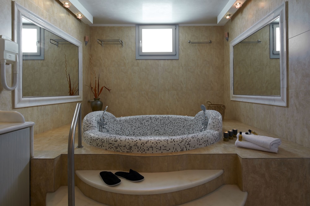 The villa itself it beautifully and tastely furnished, with Jacuzzi, bath tub and pool etc. Totally satisfied with our villa - spacious, well equipped, beautiful view of Caldera and Aegean Sea.