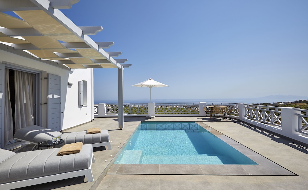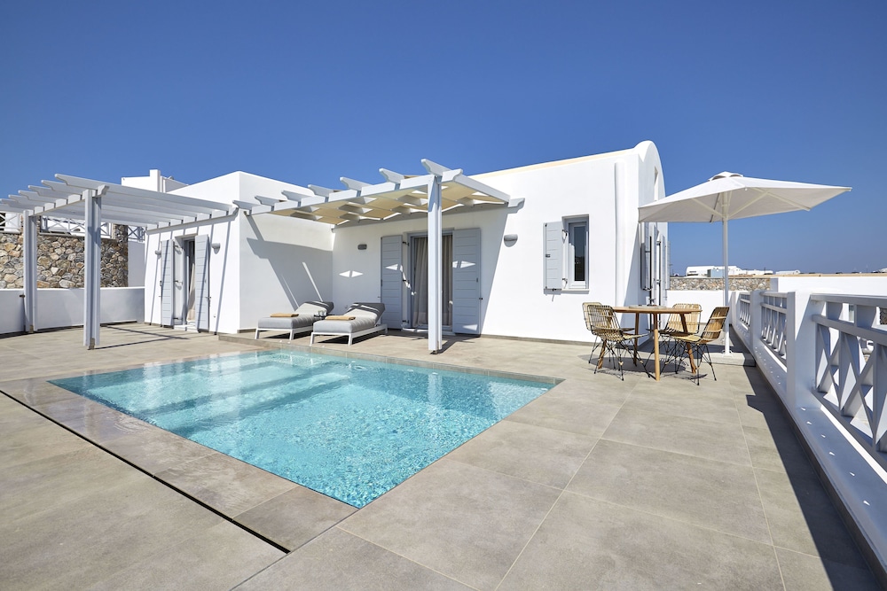 Beautiful modern hotel near Fira. It was very windy while we were there so we didn’t get to fully enjoy our private villa pool. Amazing shower! Shuttles many times a day to and from Fira central area. This is the hotel to stay at if you prefer a quieter stay in Santorini.