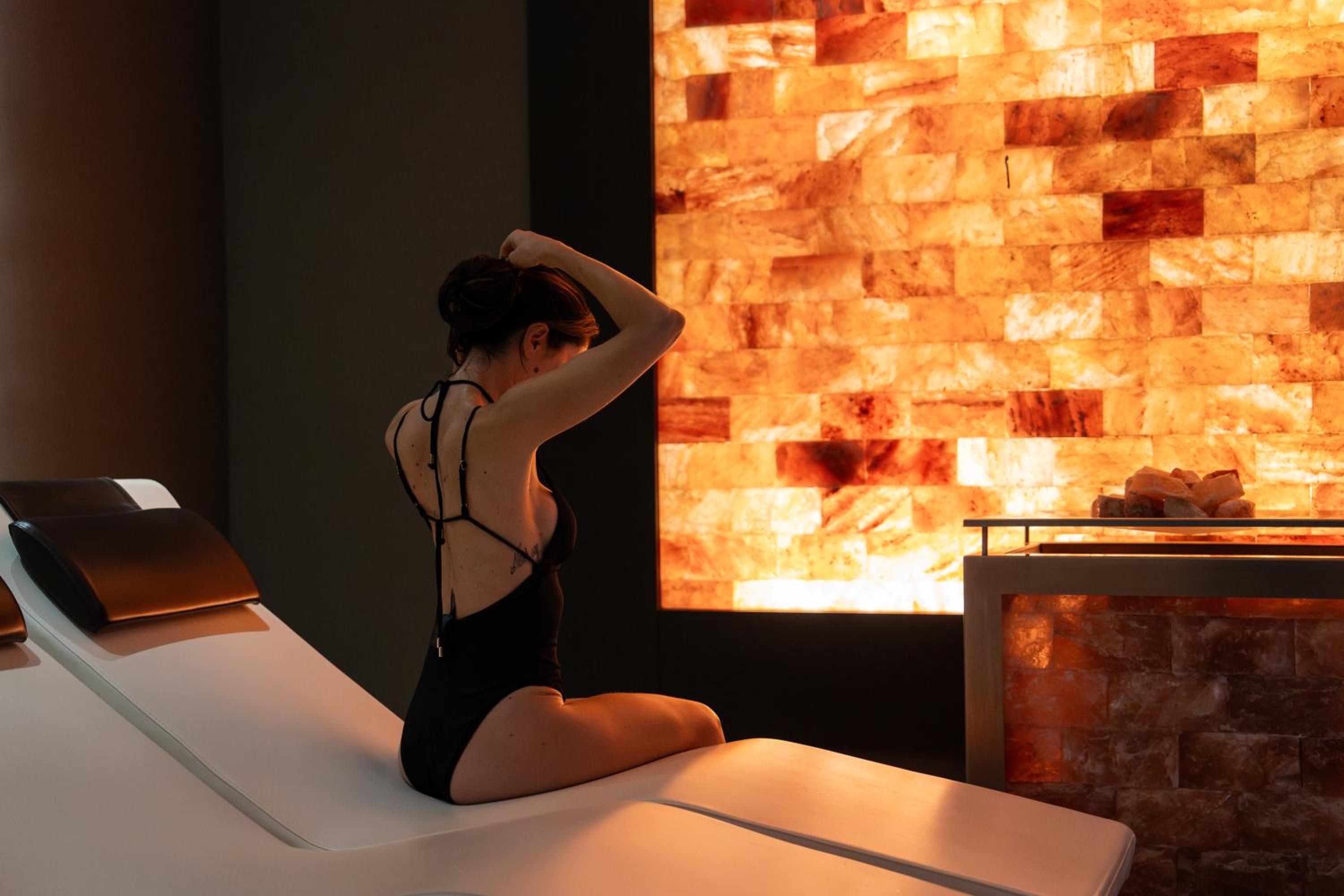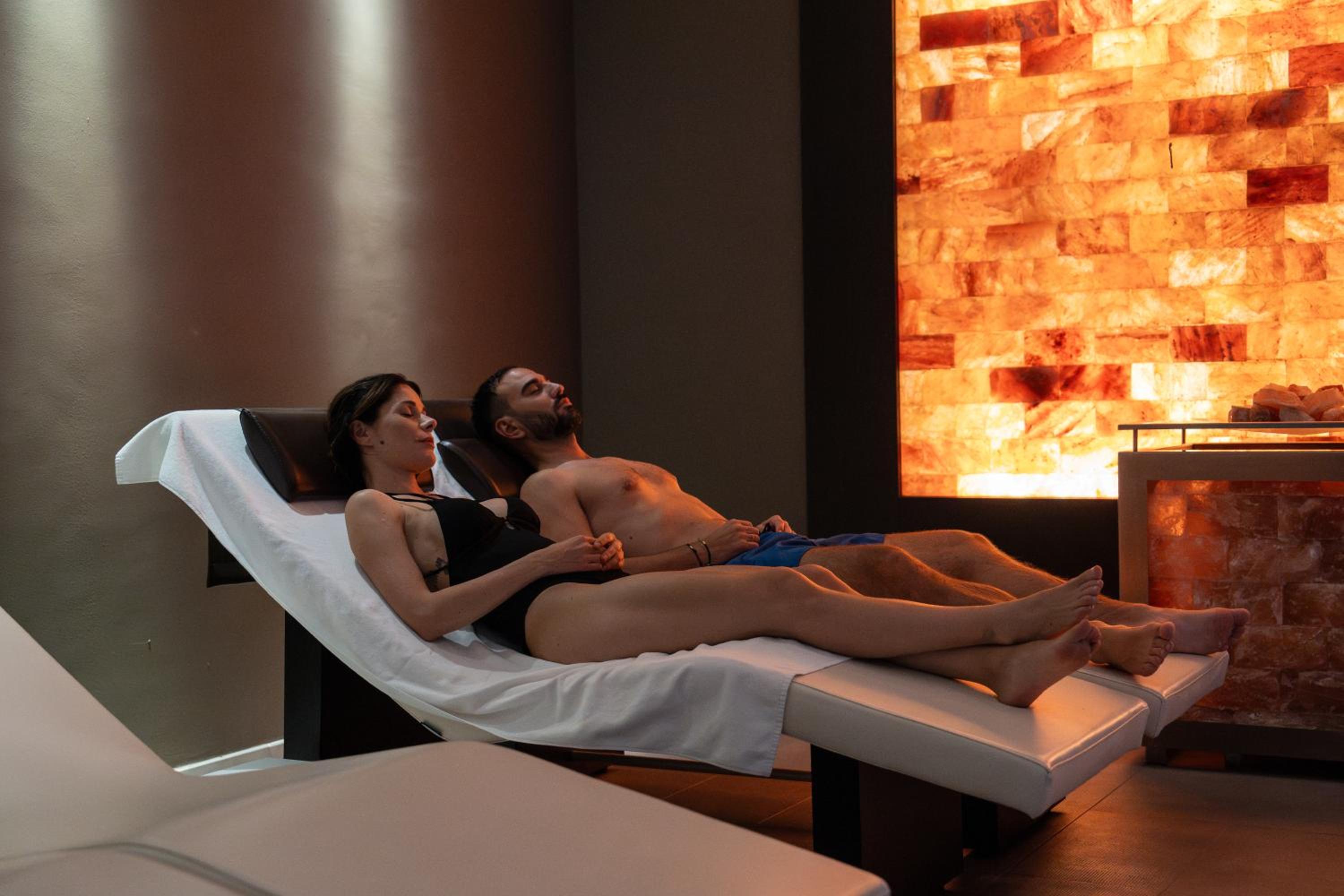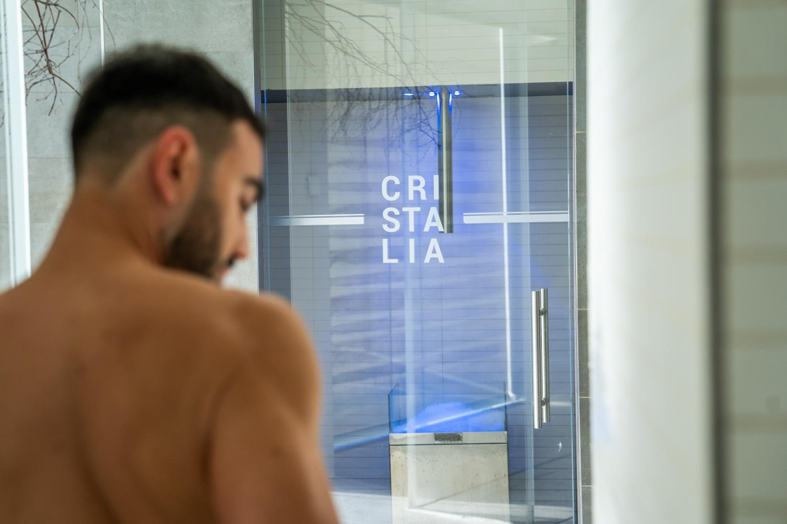 Con tutte le tipologie di saune, docce aromatizzate e la spa cristalia ovvero una stanza con parete di sale ed una vetrata enorme che permette di godere della vista del giardino con piscina.