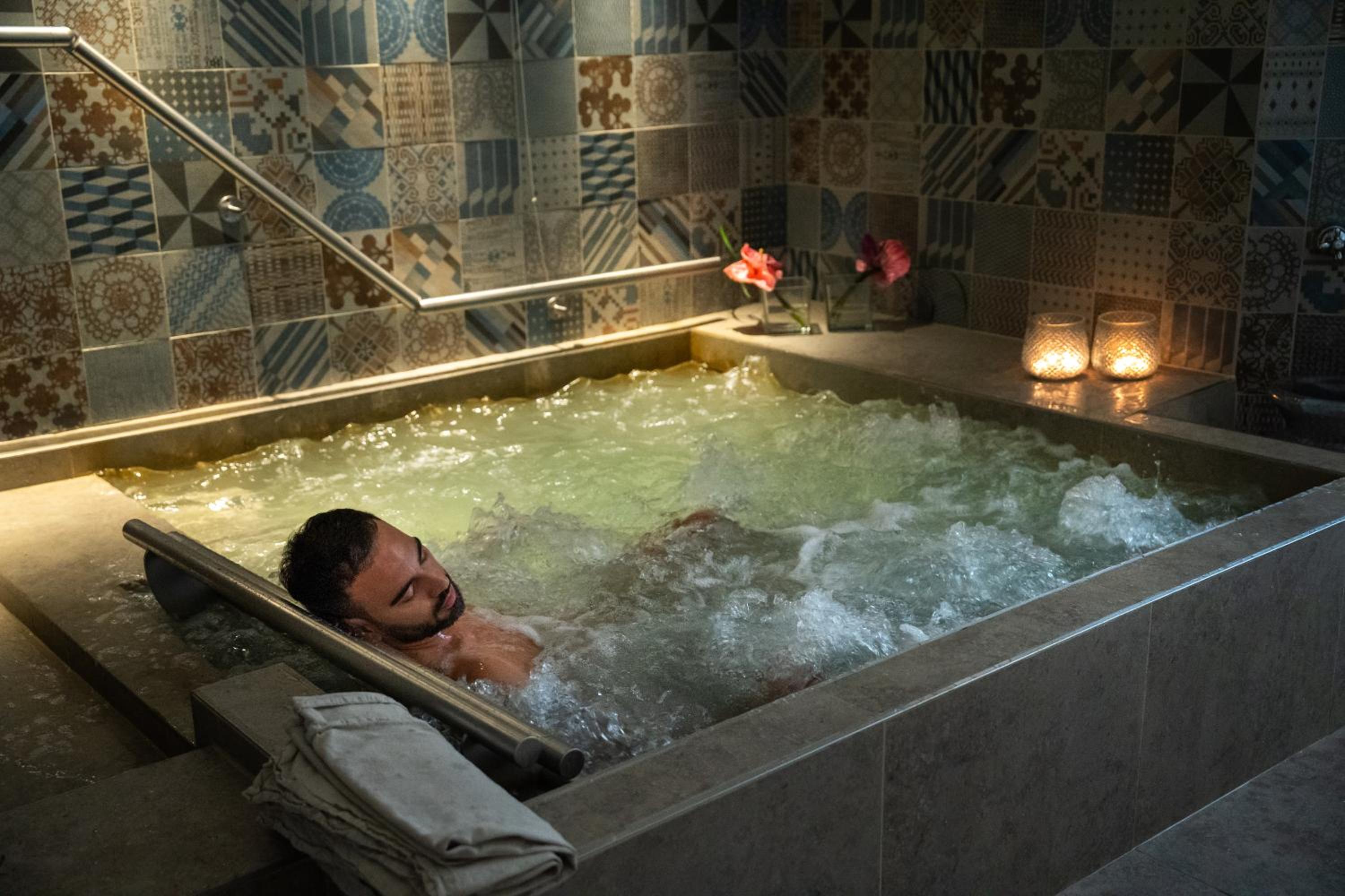 Oltre ad avere la piscina termale aperta fino alle 23.30, che non è per nulla scontato) , si ha una vasca idromassaggio interna, una mini esterna, e tutta la zona spa al primo piano.