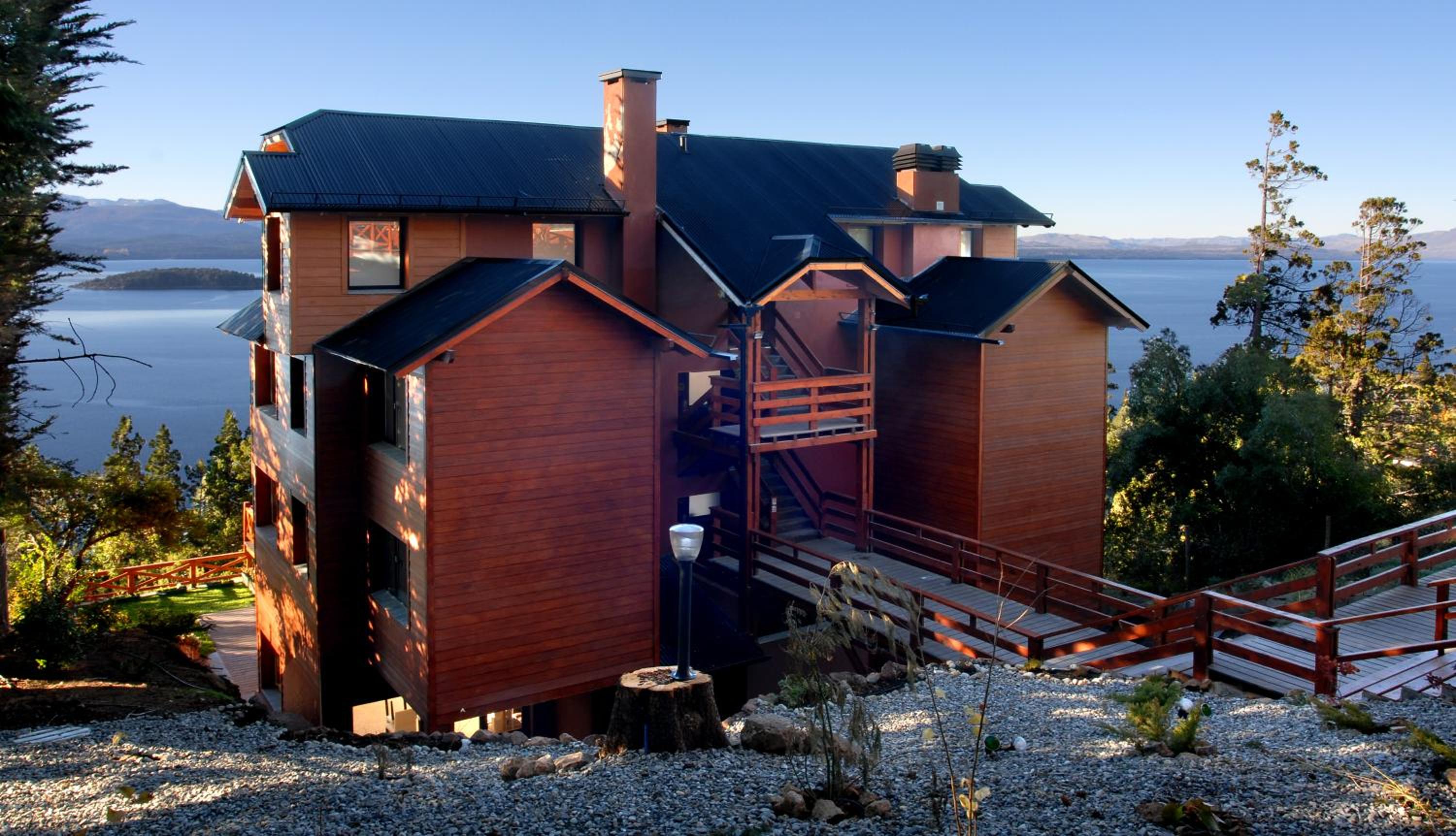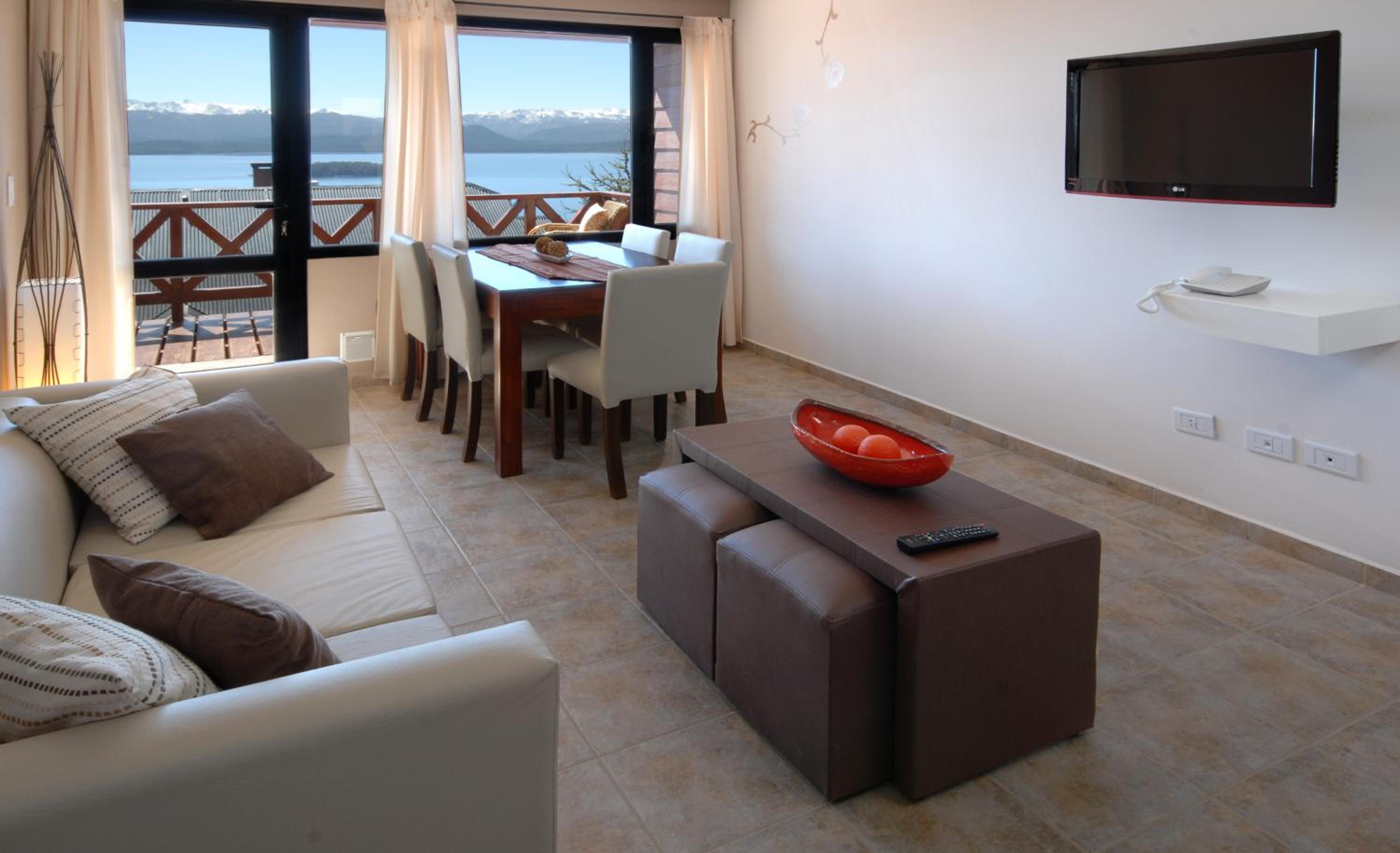 Experience breathtaking views of Nahuel Huapi´s lakeshore from the balconies of our contemporary apartments blending stonework architecture with modern design.