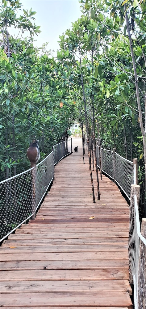 Le plus non négligeable : la famille de singes en libertés et un ponton permettant de profiter d’une vue incroyable sur l’océan indien et ses marées.