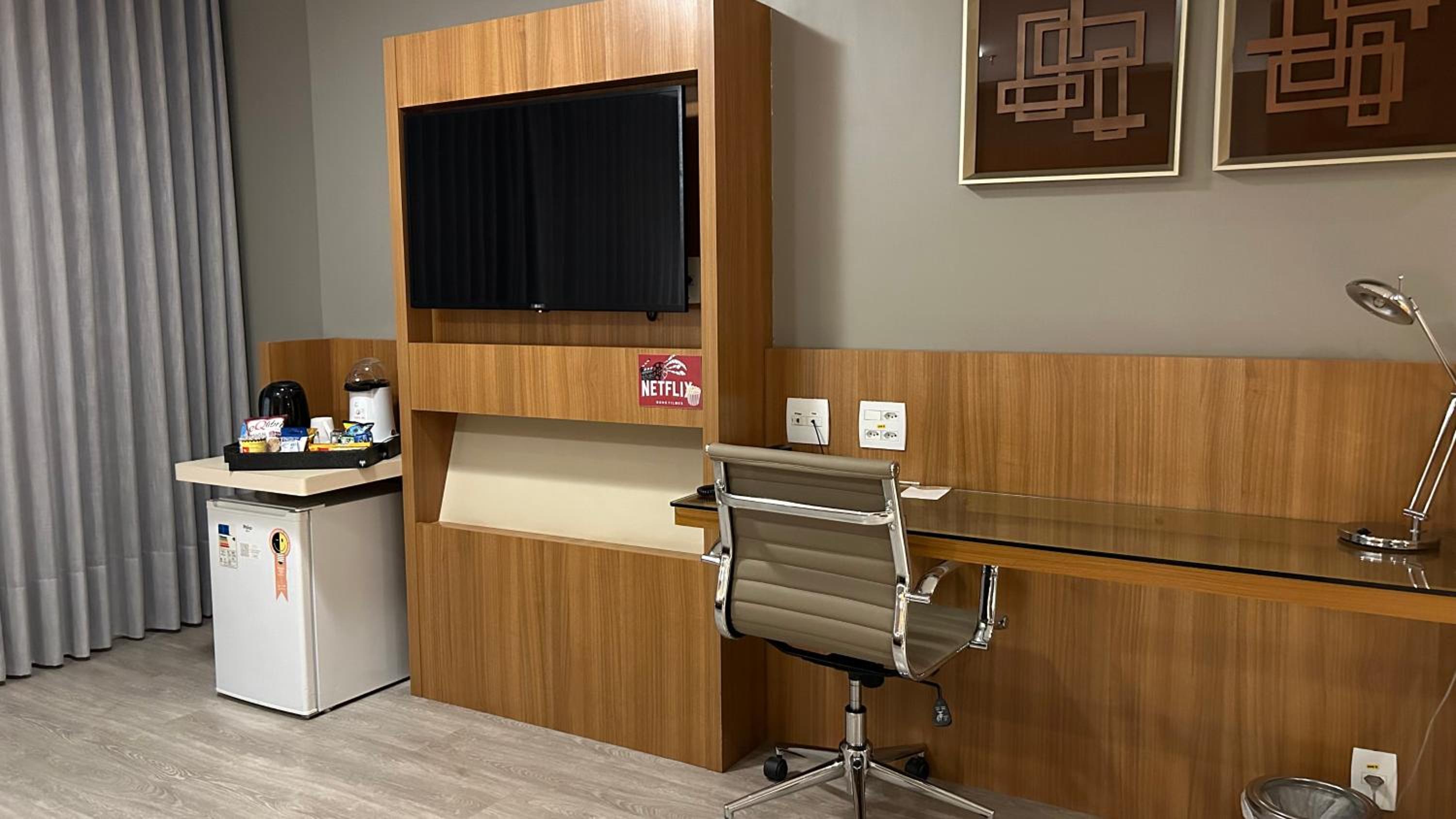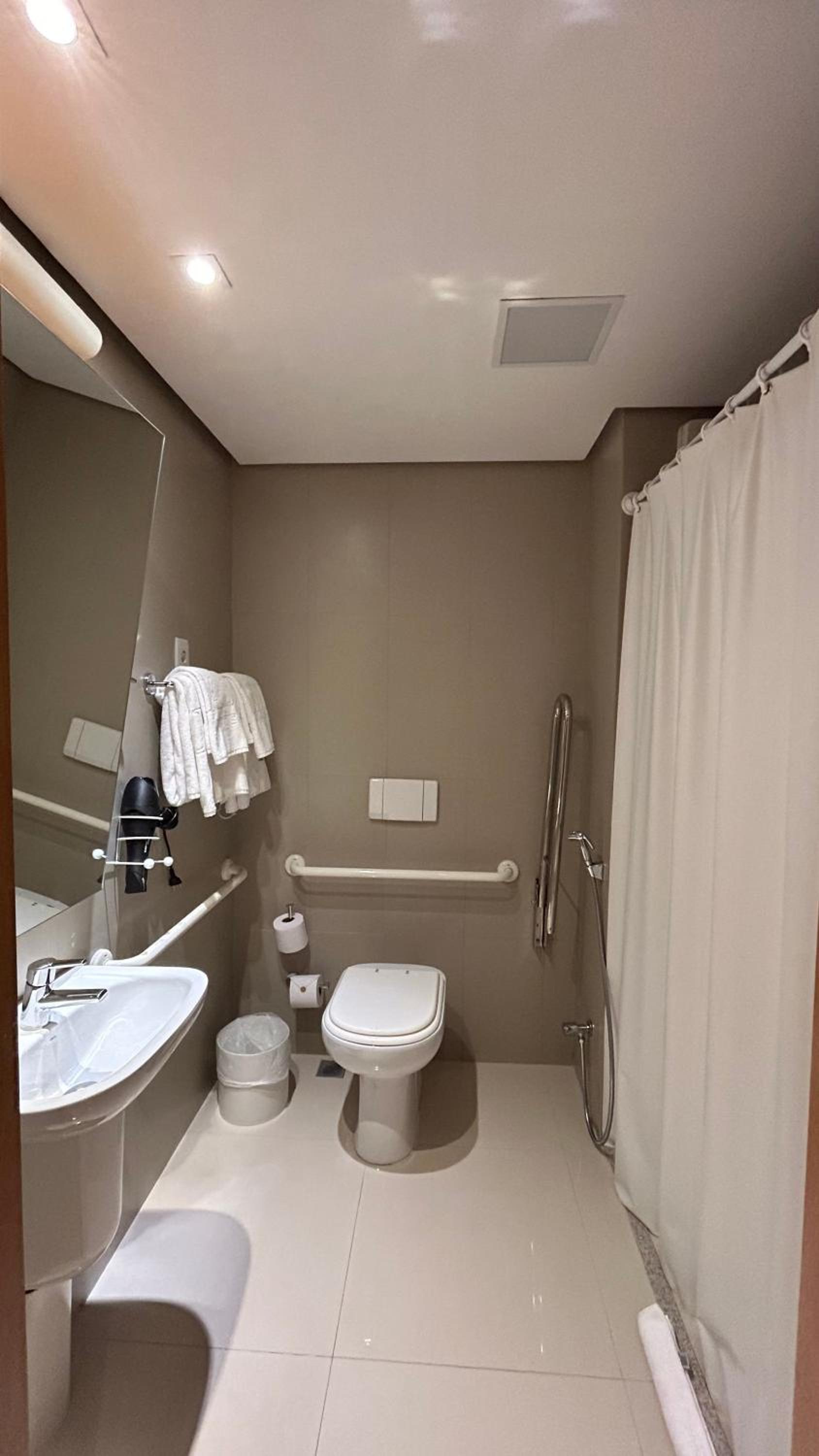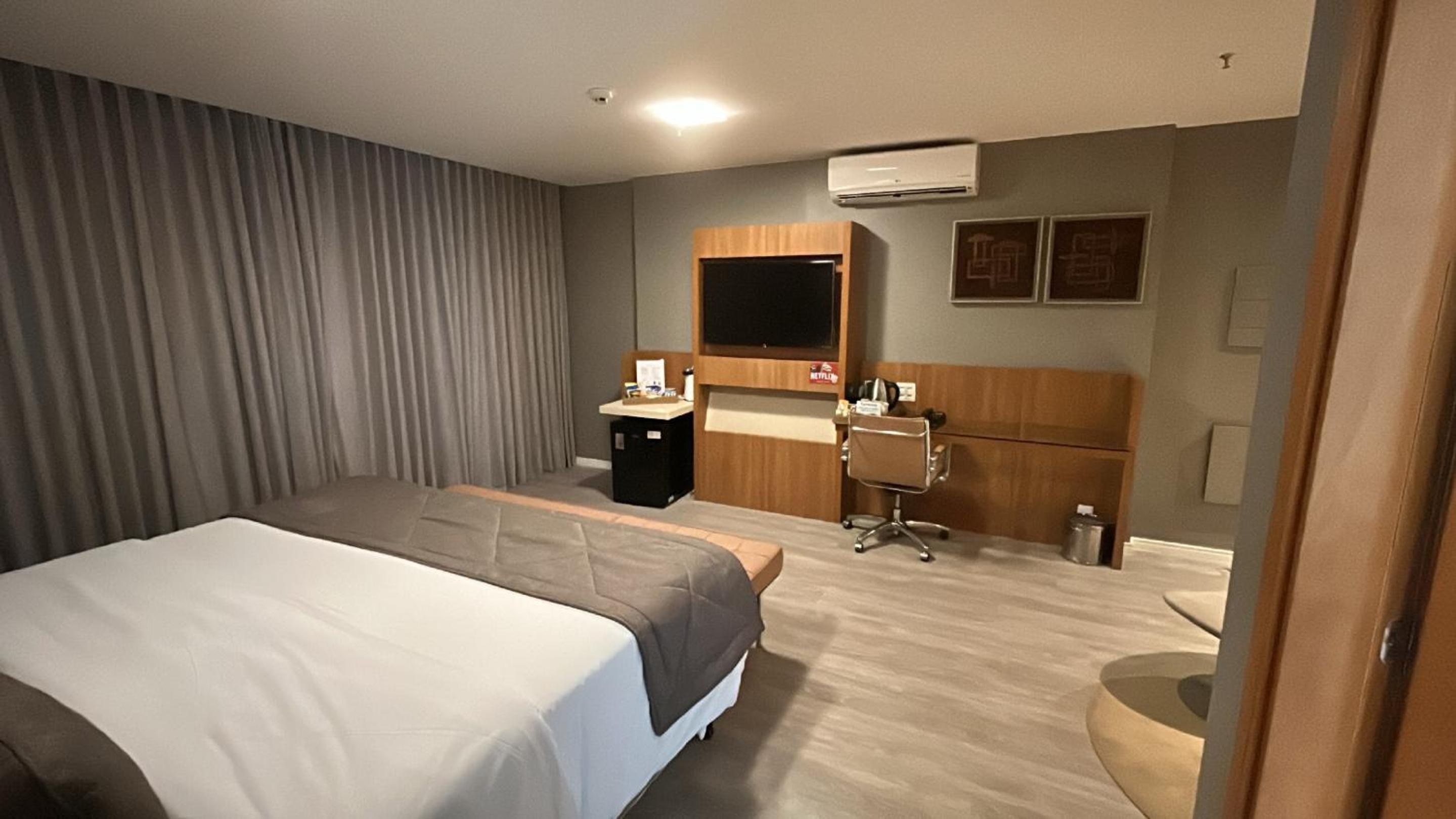 Tamanho do quarto é excelente e o chuveiro é muito bom! Piscina aquecida numa temperatura razoável, sauna em boa temperatura também. Atendentes cordeais, hotel muito limpo e bom café da manhã!