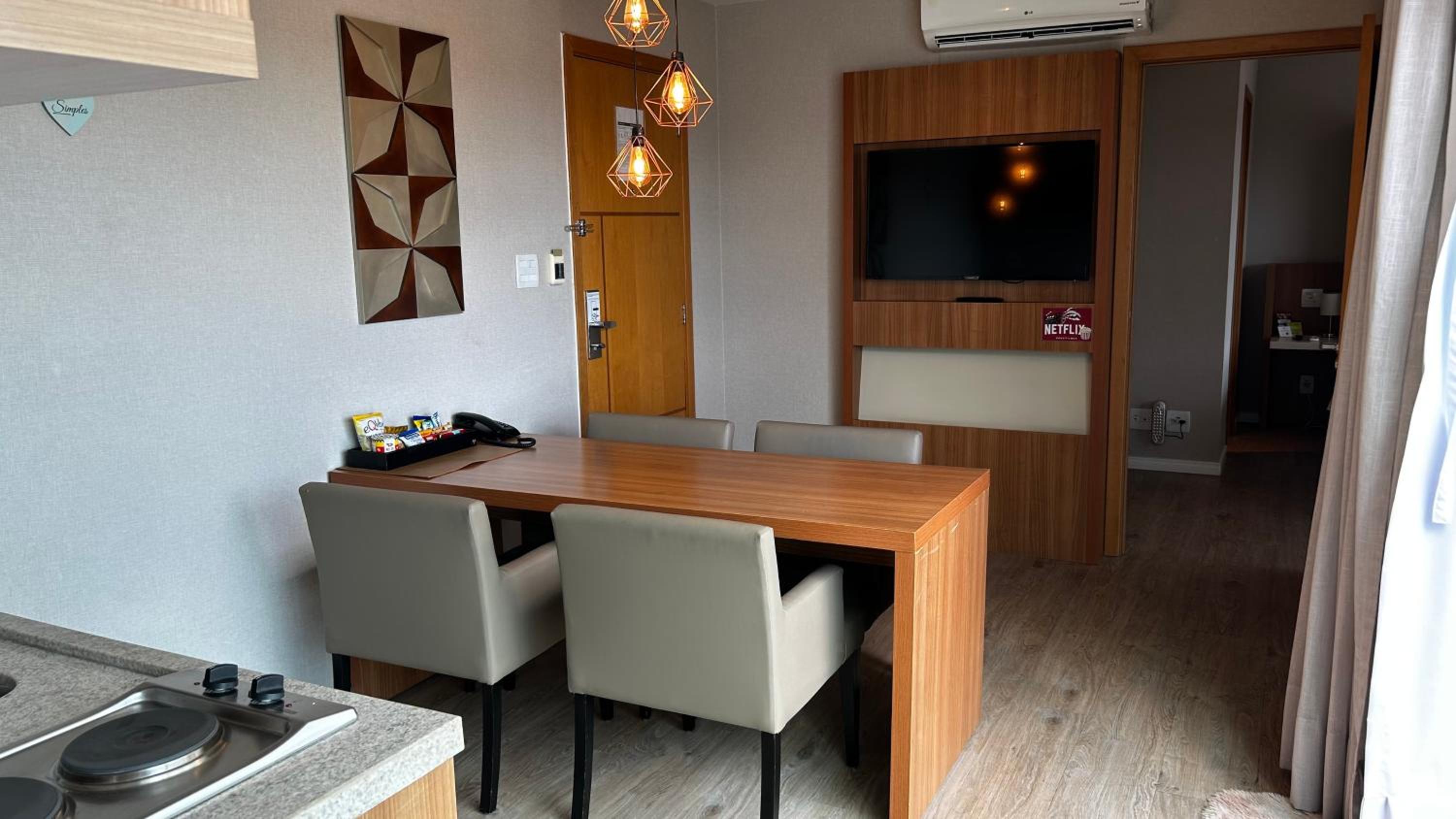 Quarto extremamente confortável. Café da manhã variado e com qualidade. Restaurante à noite com ótimas opções de carnes. Chuveiro muito bom.