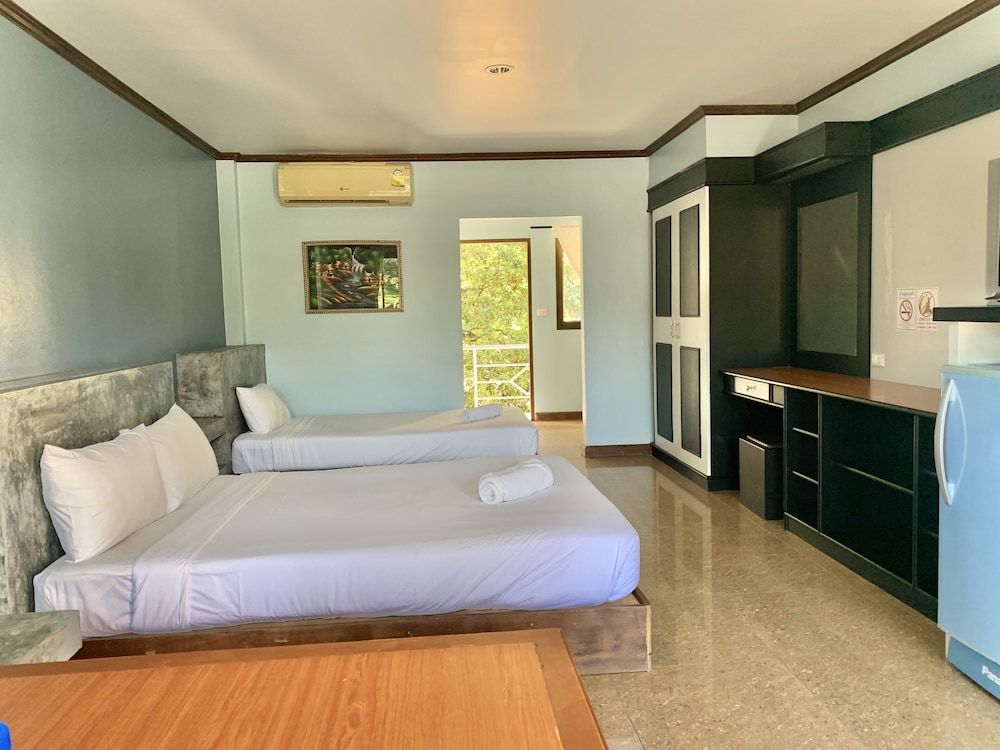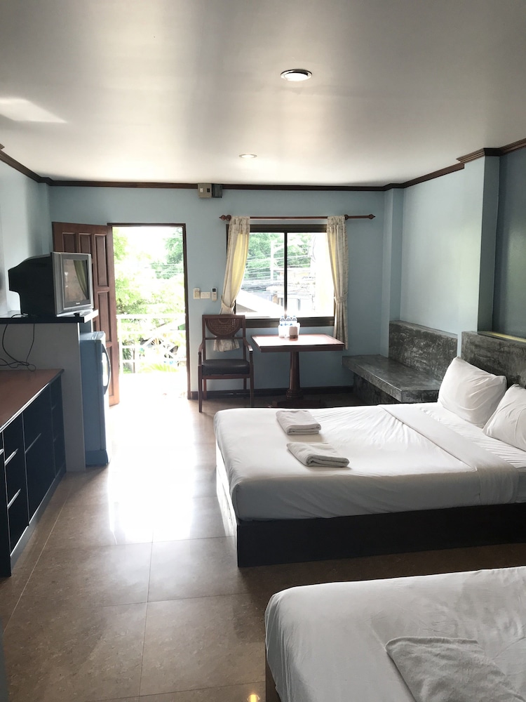 3rd time staying here and have loved every stay. Stayed this time with my partner & friend in a triple room great size room comfy beds and air con works amazing & is v quiet too. Room equipped with a fridge a tv only downside is the 1 English Channel but not a prob as your out most nights anyway. £17 a night for this place is a bargain rooms cleaned everyday & the pool is fantastic & always quiet & sun beds available almost like it's exclusive for yourself! A bit away from the action so always guaranteed a good nights sleep. Staff always friendly and check in takes no time. Wifi never an issue and always had great connection speed. It's about 10 mins walk from the centre of chaweng where the main bars are or get songtheaw (local taxi) for 50 bhat =£1 if you don't fancy the walk. Also about 10 min walk to the beach. Will certainly be staying again when we go back to Thailand in 2016.