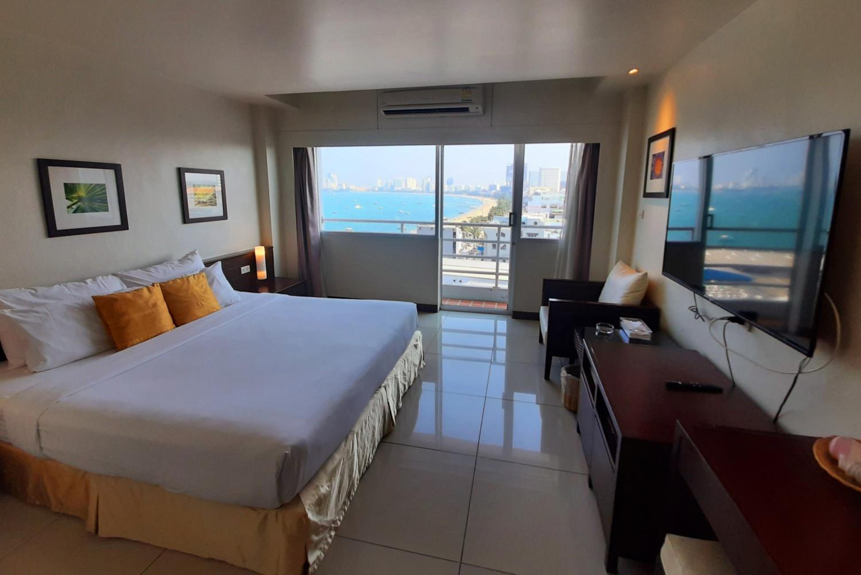 Enjoy breathtaking panoramic views of Pattaya Bay from our sun deck at Grand Hotel. Located on the vibrant Walking Street, our modern air-conditioned rooms offer free Wi-Fi and stunning sea views.