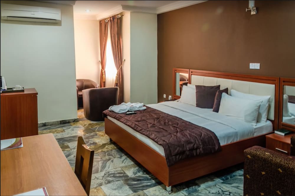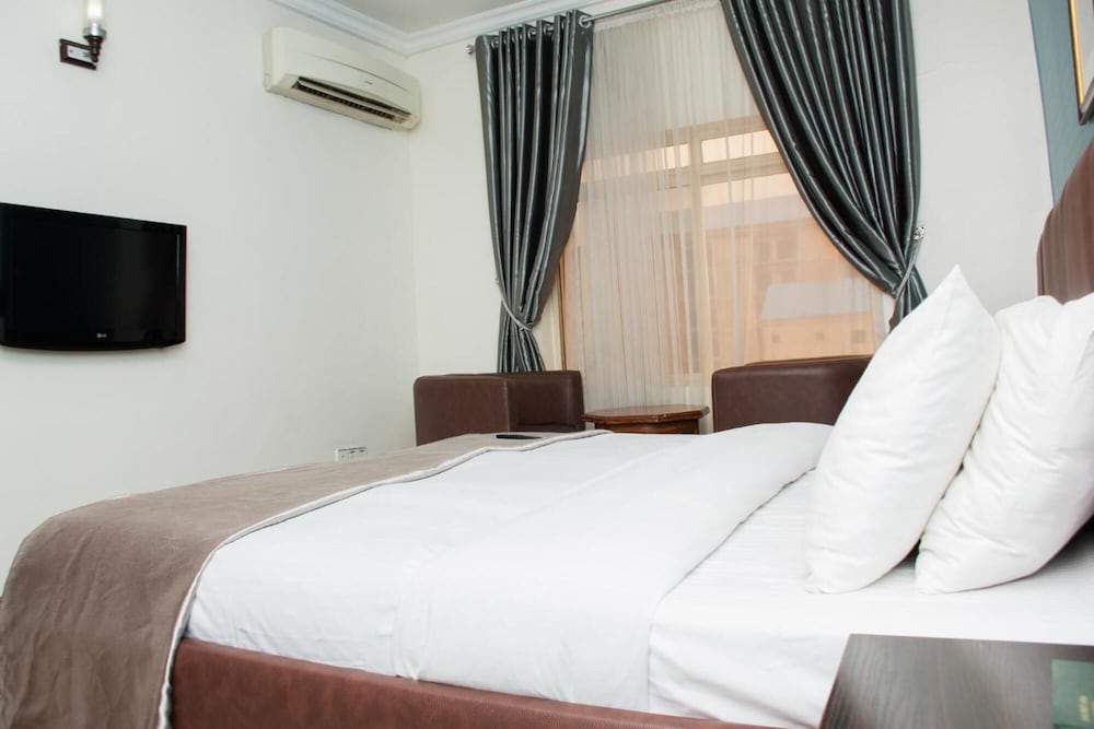 My room in 3J's Abuja was pretty basic.The bed was big, nice, mattress firm, the way I like it. The air conditioner worked, excellent in the 37C weather. I arrived from London very early. The breakfast buffet was good, nothing fancty, but, good. The staff were friendly, and, once they knew you, extremely accommodatiing.