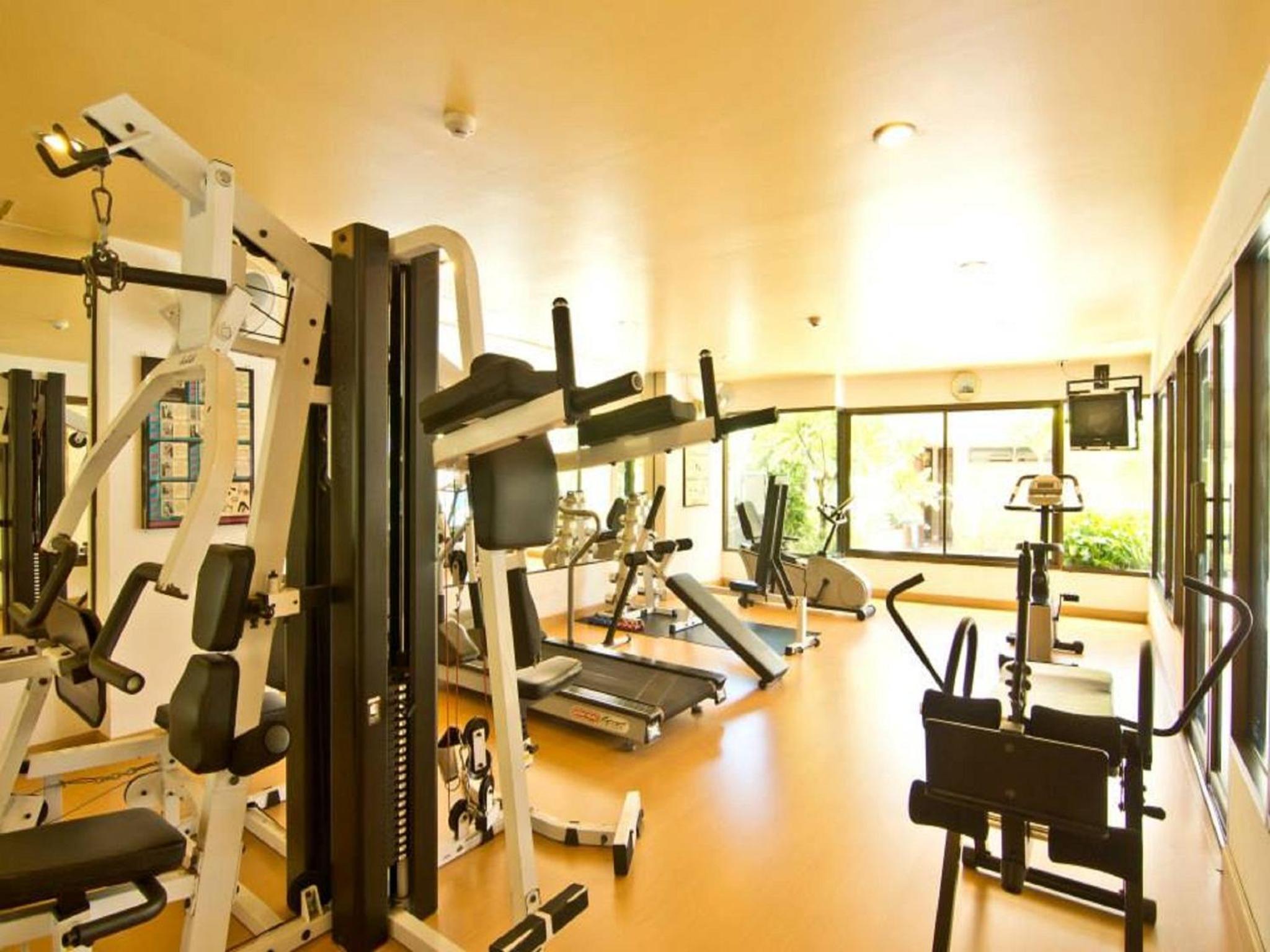 Bra pool området med gym och bastu.