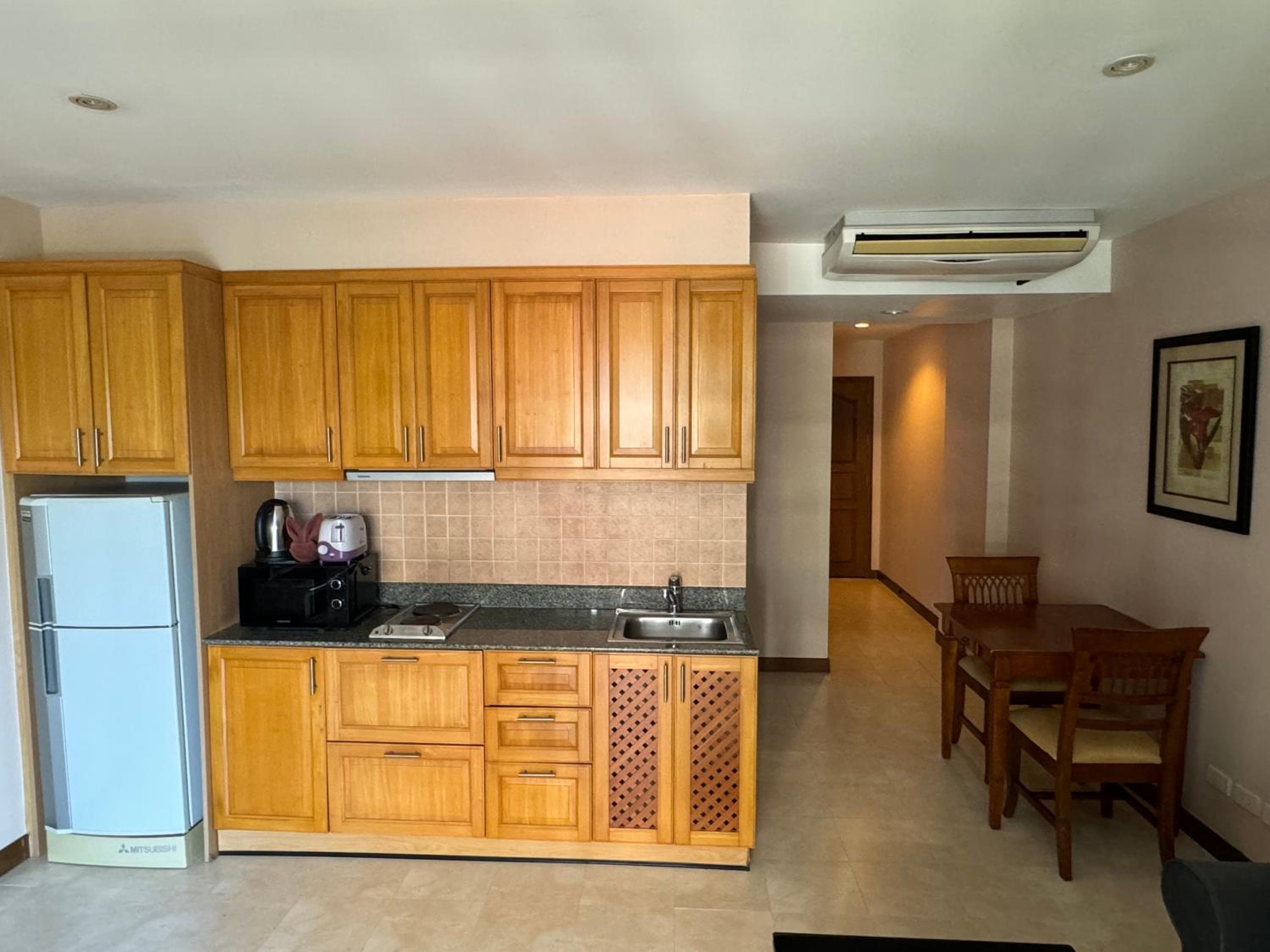 Indulge in the comfort of separate kitchens, dining areas, and air-conditioned bedrooms and living rooms at Jomtien Beach Residence. Enjoy the luxury of a balcony in each suite while staying just 60 meters from the beach.