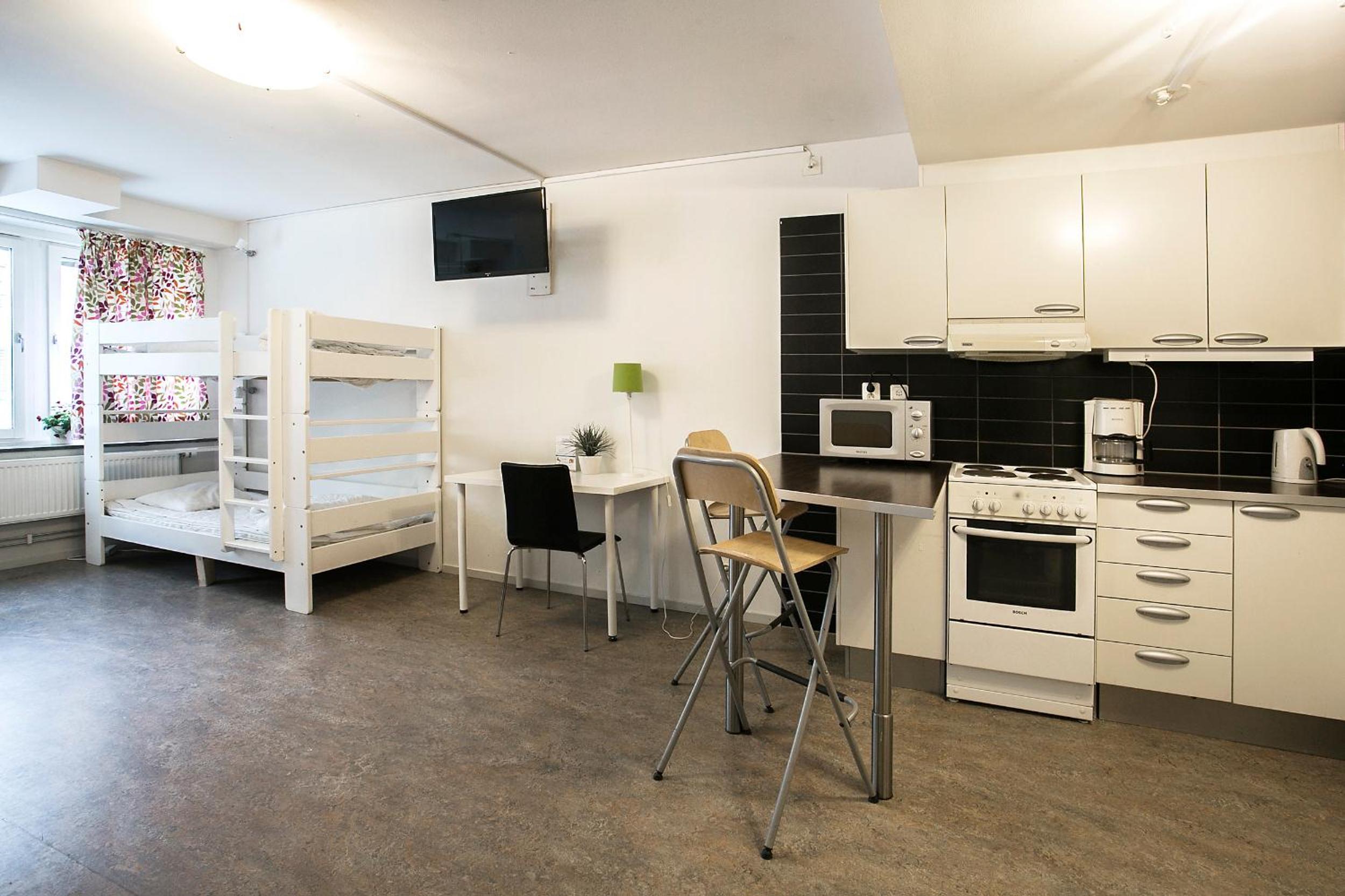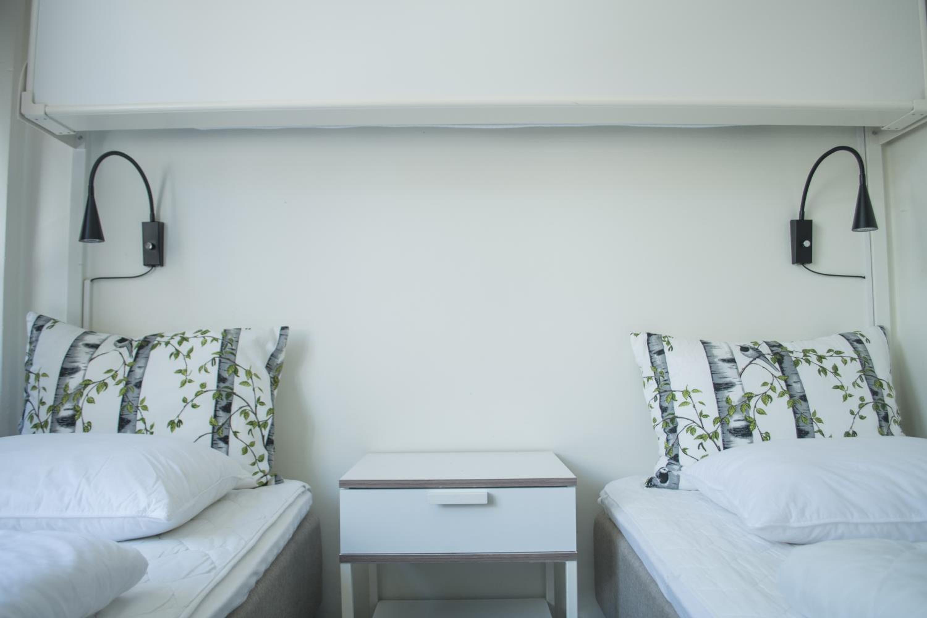 Welcoming staff, clean and comfortable room, using 2 of the 4 beds. You can either stay as a hotel guest, or pay less as a hostel guest, but make your own bed, clean your room and pay extra (SEK 85) for breakfast. Luggage room was very useful.