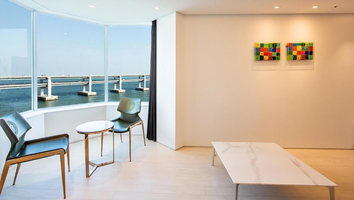 This was the best hotel in our trip in South Korea. The location is perfect, very quiet and mostly residential area. As transportation is very easy in South Korea, here also it was easy to get a bus to any destination. There are some cafés nearby (and one at the hotel). The views to the bay and bridge are impressive. Excellent staff. We had also dinner once and it was really good. I recommend this hotel and I would come back again for sure.