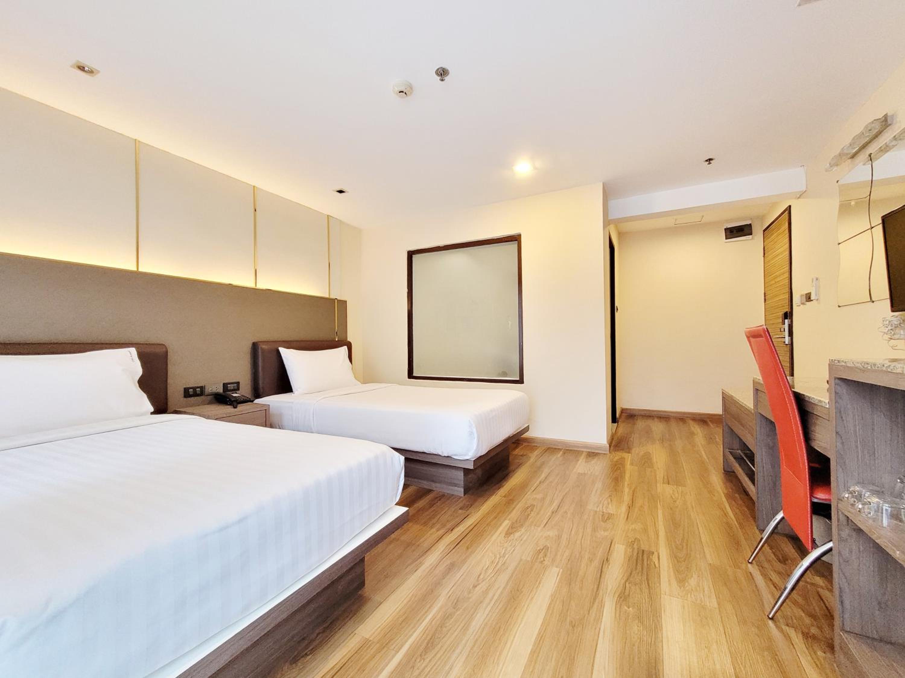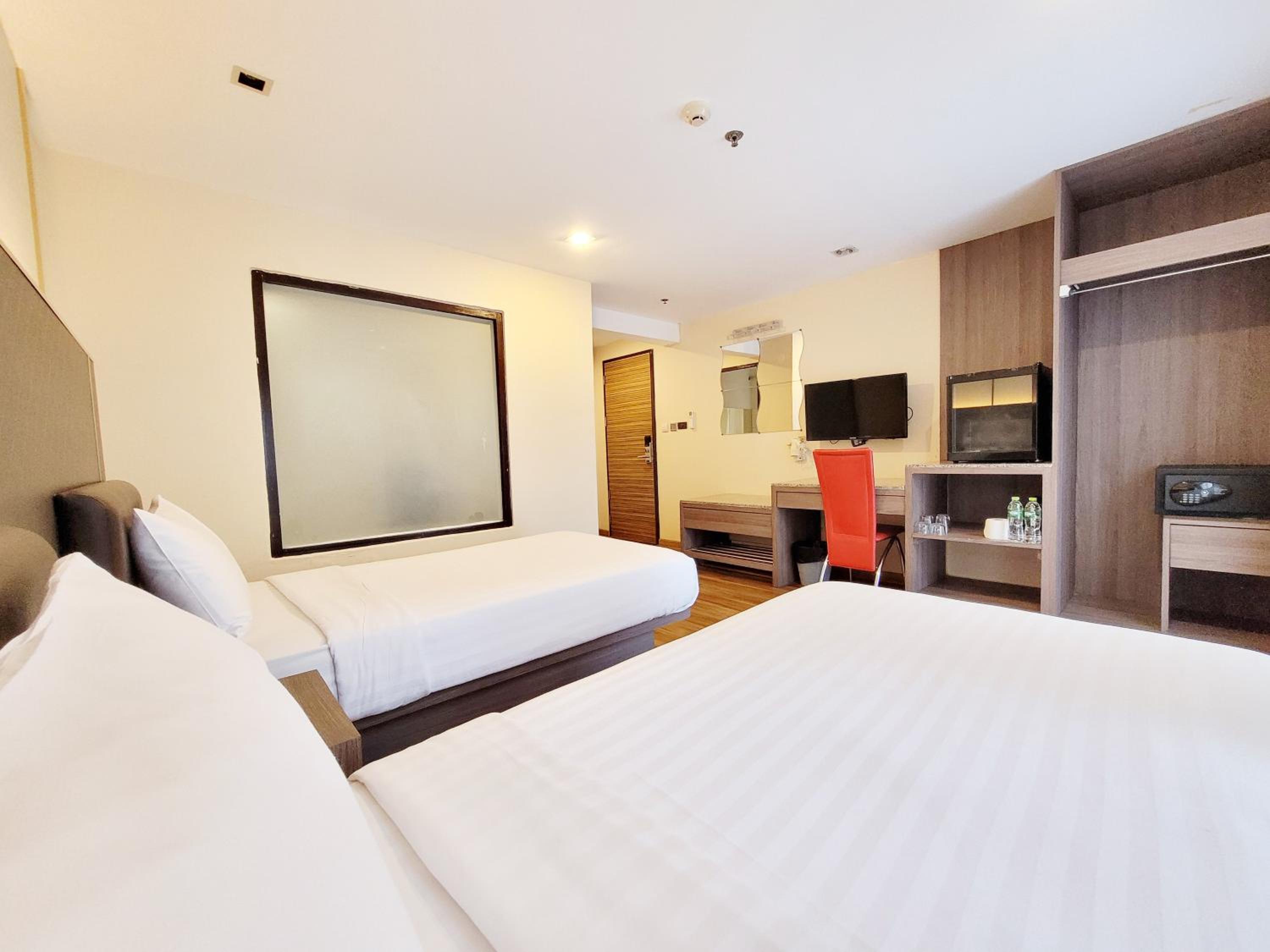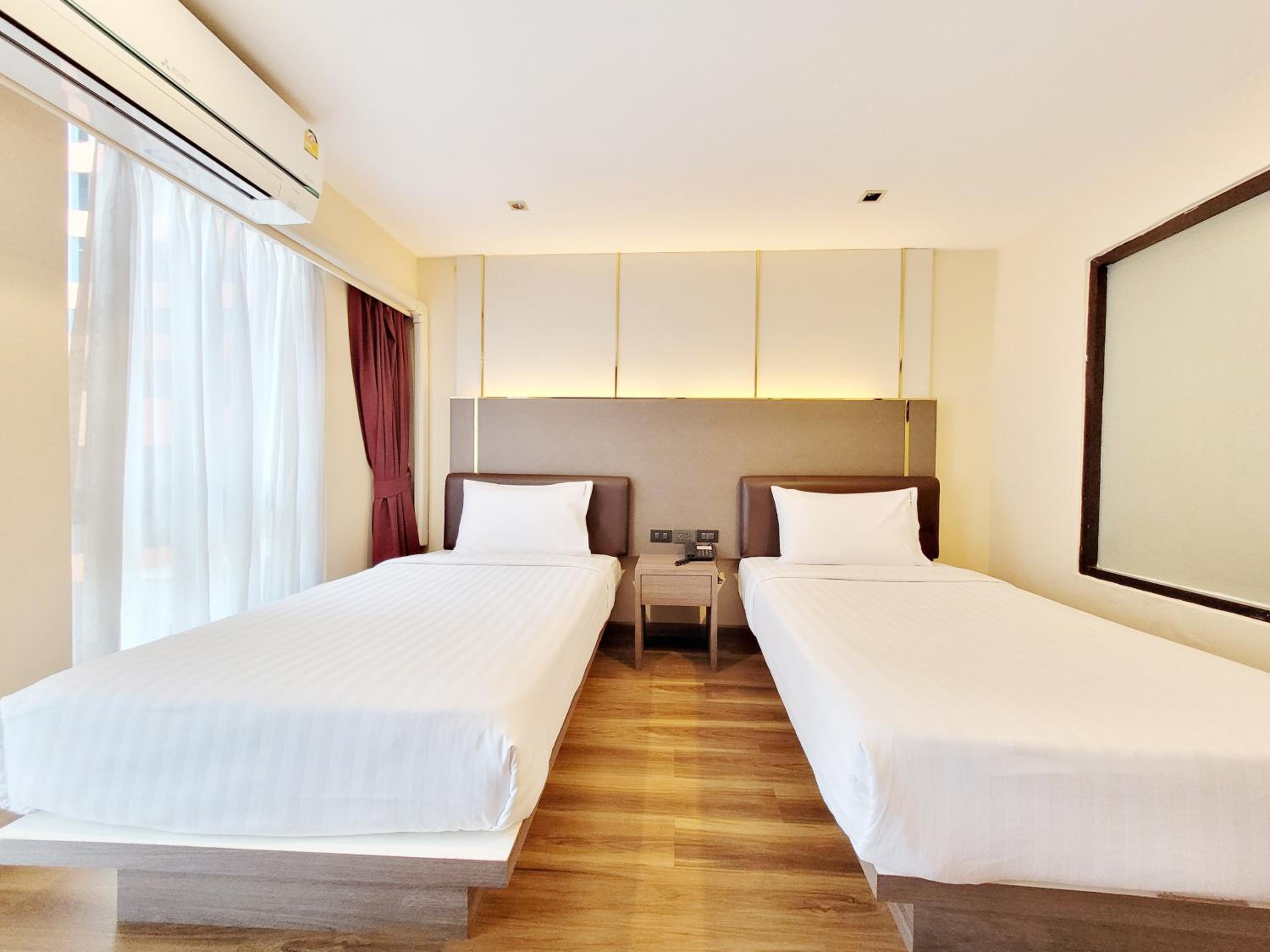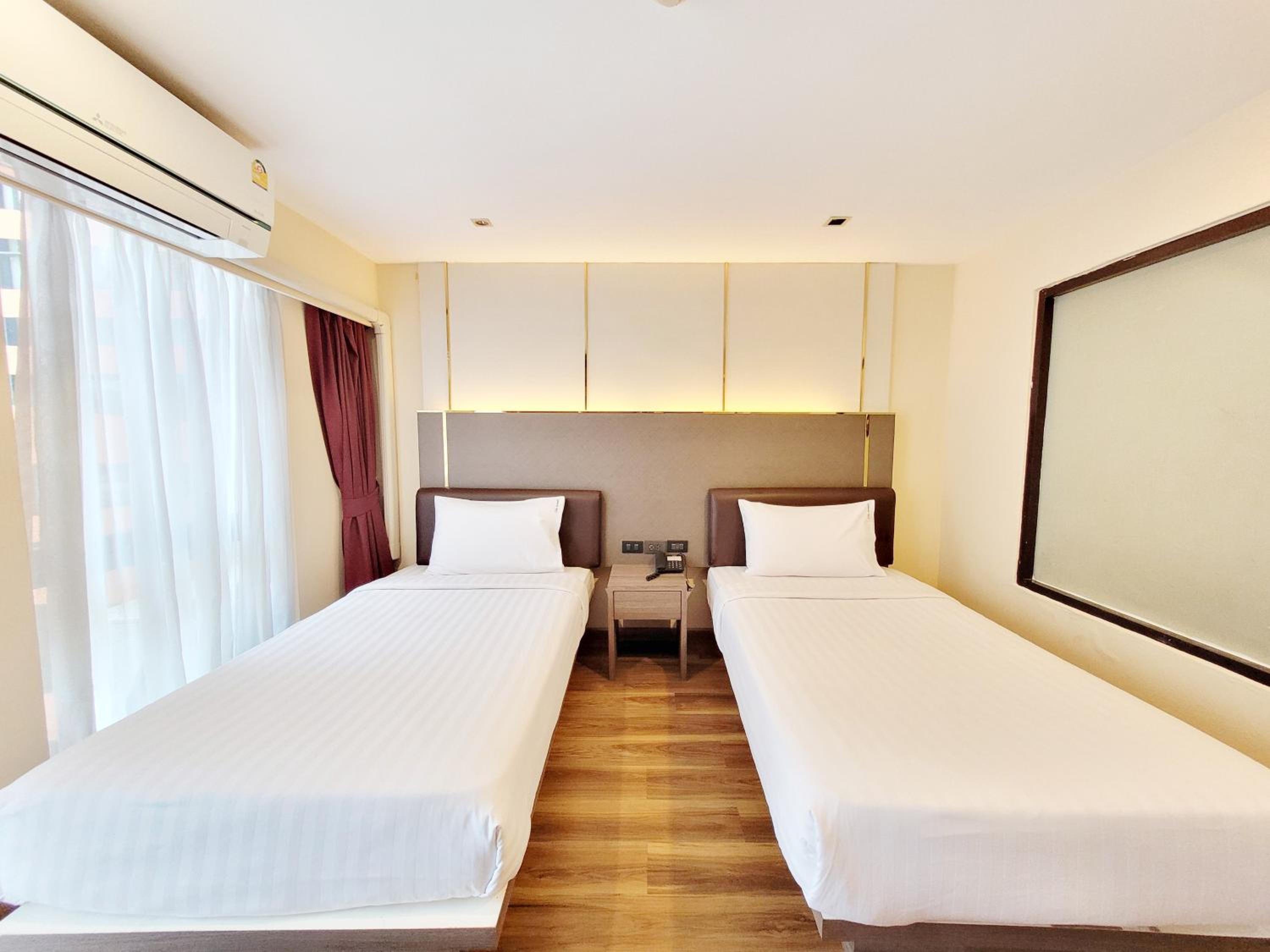 The hotel provides air-conditioned rooms with modern amenities, including free WiFi, flat-screen TV, and safety deposit box, ensuring a comfortable stay for guests.