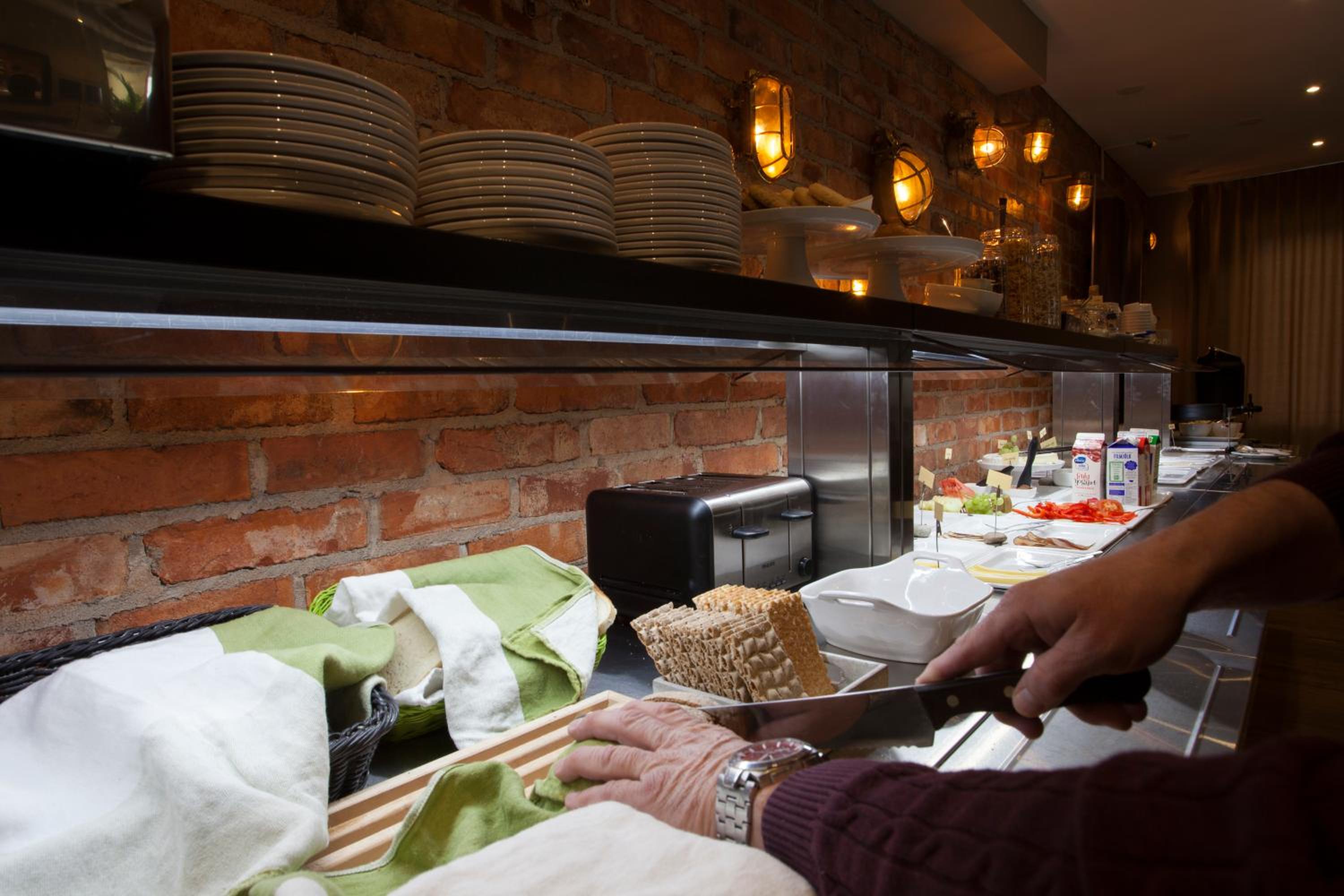 Frukosten kunde varit mer inbjudande, tex dukade bord, godare bröd.