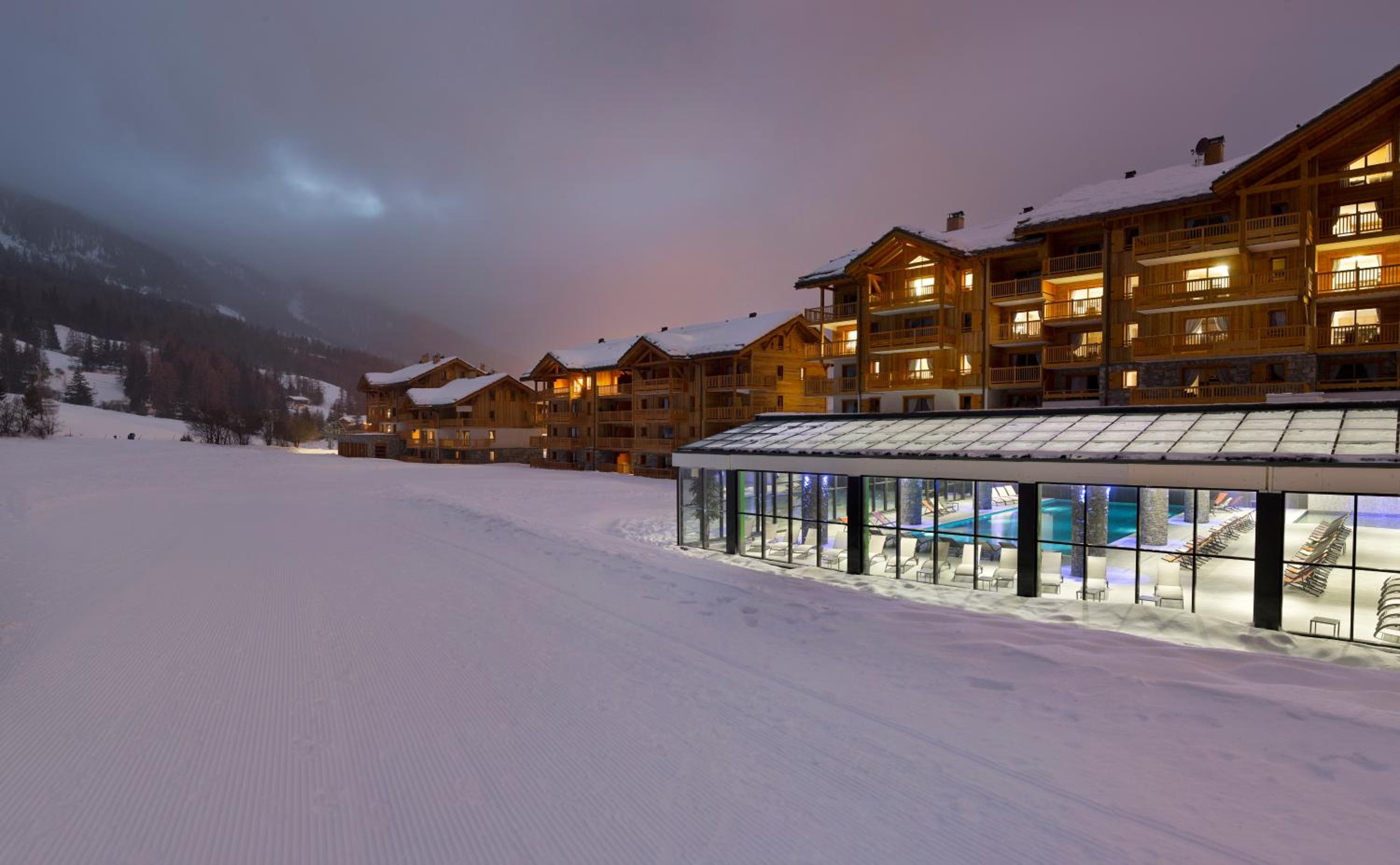 The hotel offers apartments right next to a slope. We had a ground floor apartment, which was perfect for our dog, and overlooked the piste. We could literally ski to our backdoor everyday.