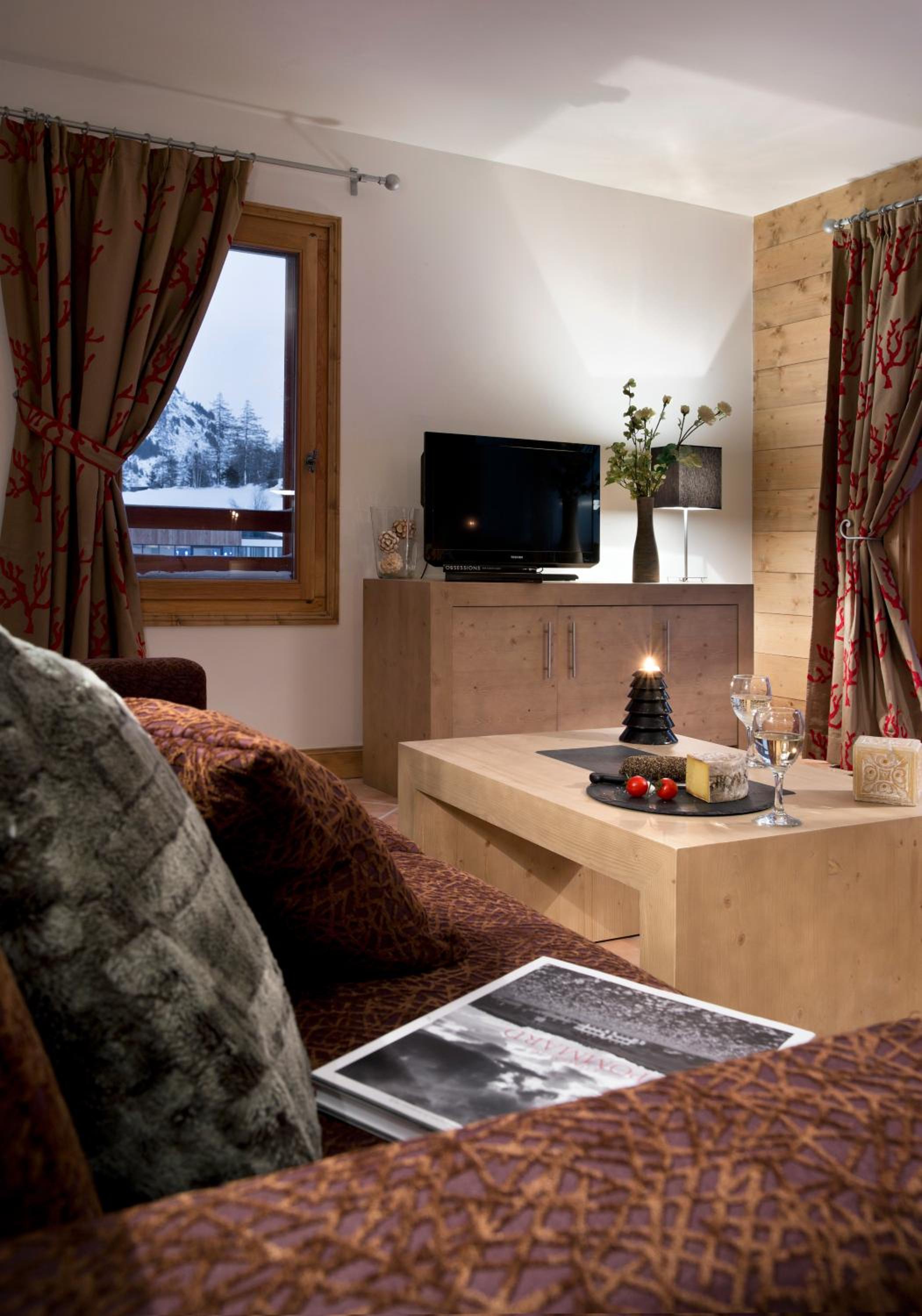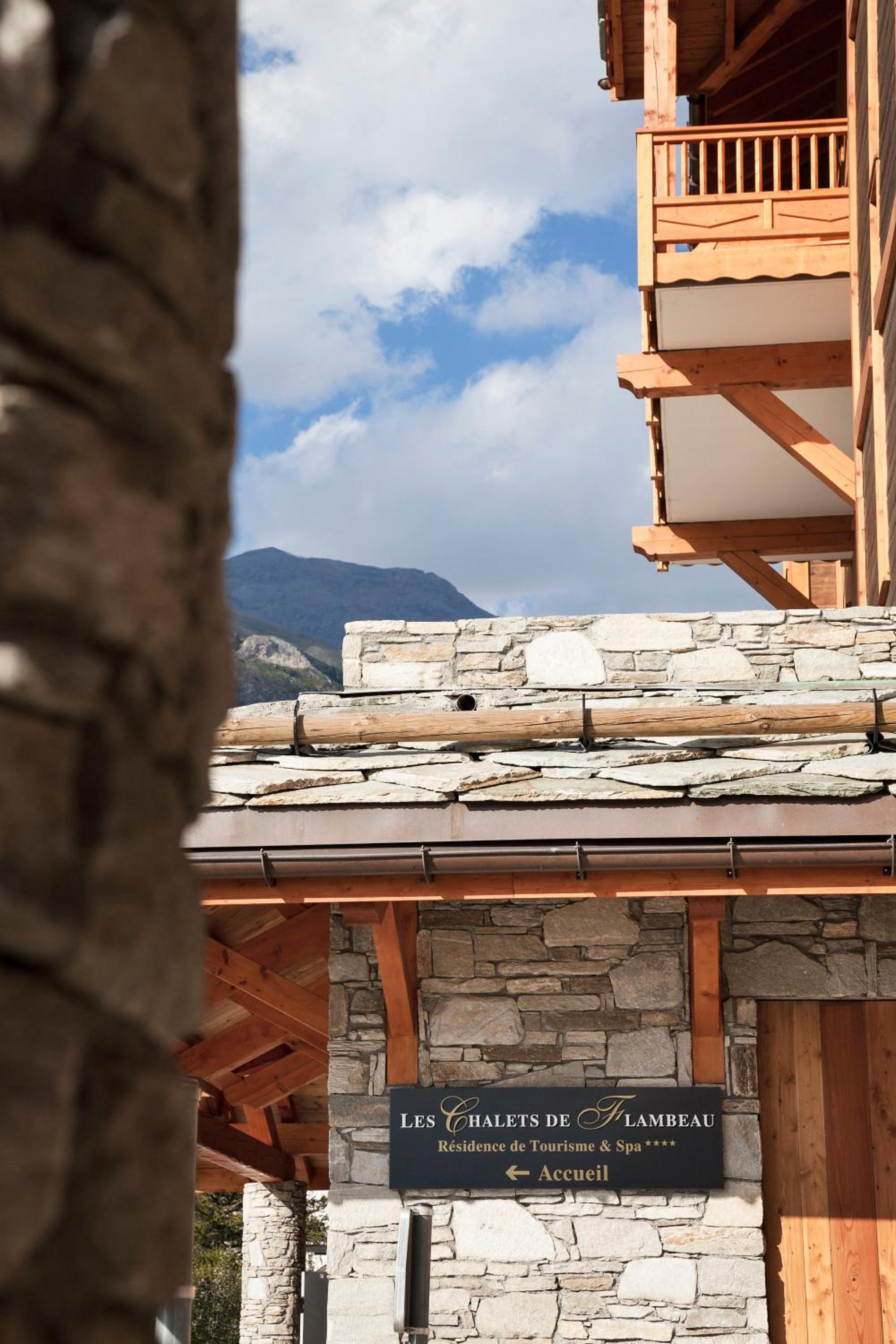 Spectacular Mountain Views: Nestled in Lanslebourg at the base of Val Cenis, Les Chalets de Flambeau offers stunning vistas of the surrounding alpine landscape.