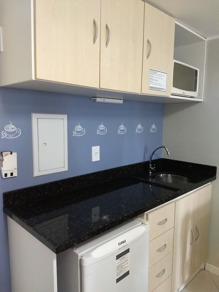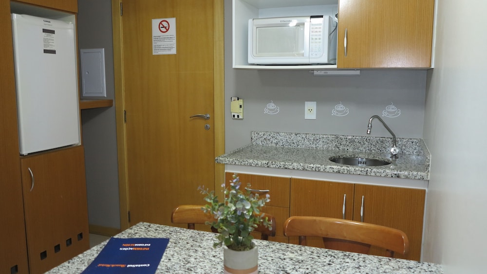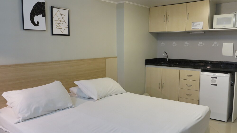 Café da manhã e estacionamento com manobristas são ótimos. Como ponto de sugestão, podia ter bebidas e alimentos no frigobar no quarto. Mas tudo é ótimo, bom, bem localizado e acessível dentro das entregas.