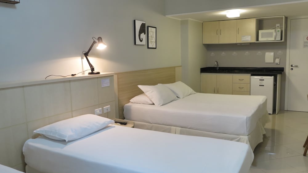 Ao chegar no hotel nos foi liberado o check-in mais cedo, sendo muito bom, pois em família tivemos mais tempo para arrumar as coisas no quarto. Ao chegar no quarto tudo parecia ótimo, porém ao passar mais tempo dentro dele, percebemos que o vidro da cabine de banho estava quase caindo, o ralo da cabine fazia barulho 24h por dia incomodando muito e o ar condicionado vazava água em cima de uma das camas. Também, o quarto Studio para 4 pessoas tem um mimi roupeiro que não dá para 2 pessoas, imagine para 4. Informado os problemas a recepção, eles resolveram os mais simples e os demais persistiram durante toda a semana de estadia.