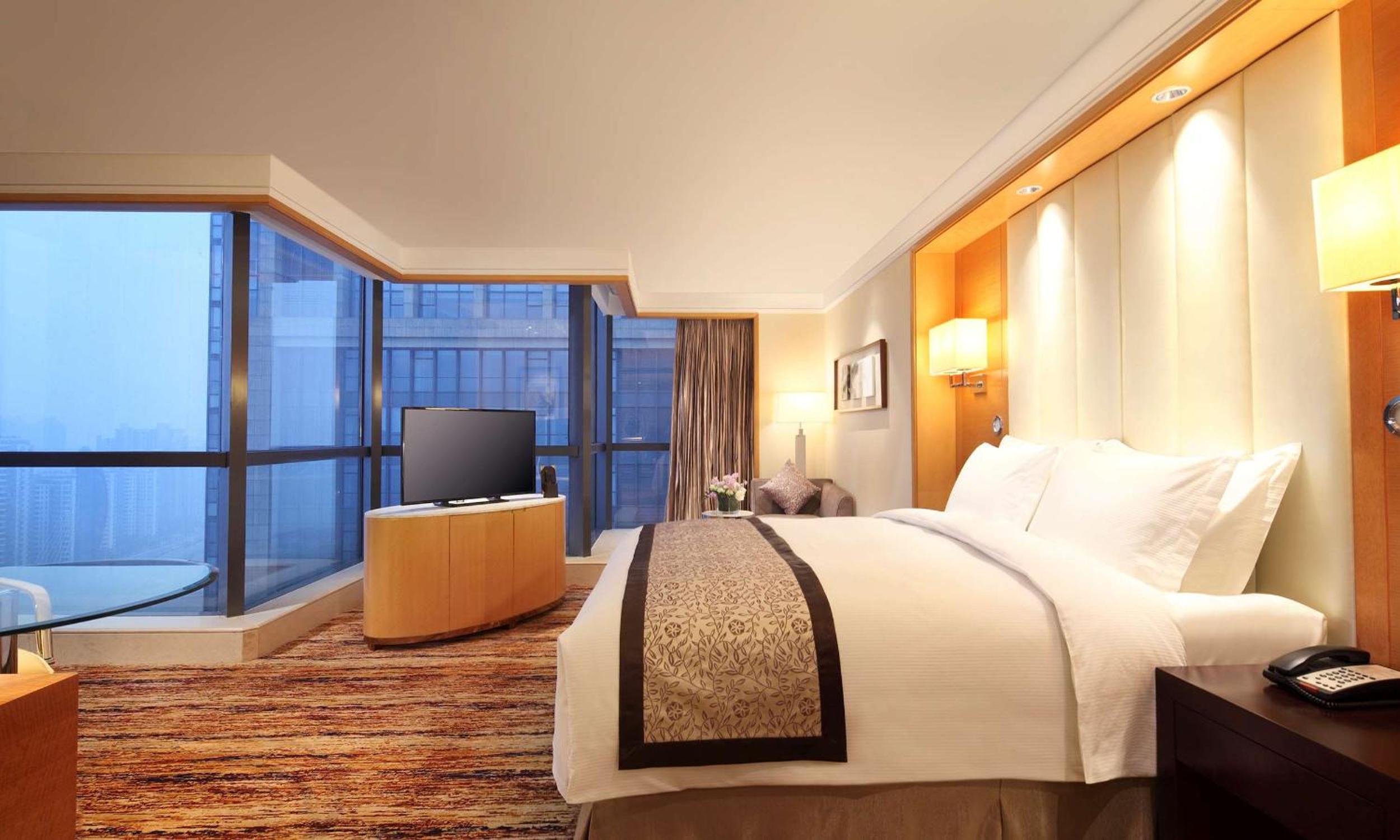 Good Location near the city center as well as being right on the Yangtze good view if the room is located on the river facing side, good size rooms with all comfort, excellent staff in Front desk and restaurant, underground parking very convenient ,yes and the cookies Amazing I bought few extra from the bar situated in the lobby