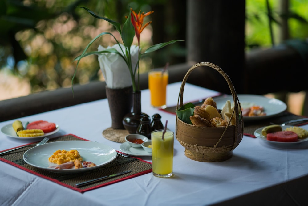 It is quite far out of town but this allows a relaxed ambience where you only hear the birds in the trees but it also means that there are more mosquitosm. The offered free tuktuk service makes getting into town very easy at any time of the day.