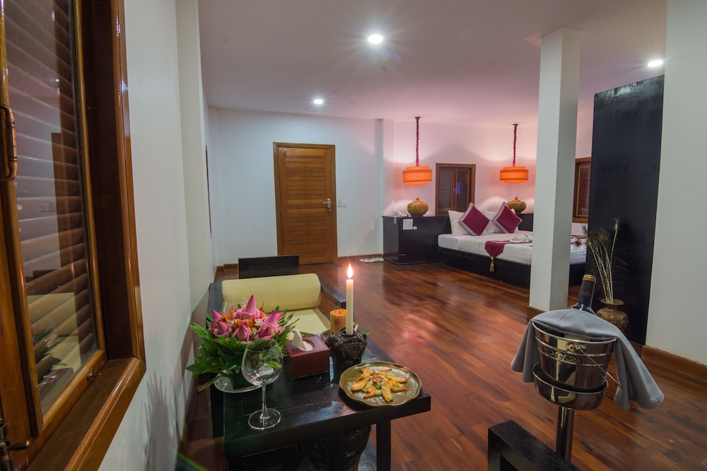 This small hotel is located away from Siem Reap in the neighbouring countryside. The complimentary tuk tuk service into town means that you get all the benefits of Siem Reap without the noise and crowds. The staff couldn't have been more helpful, the room was very clean and comfortable, the pool was crystal clear, the food (including complimentary breakfast) was delicious and the tours were excellent value for money. We loved it here so much we extended our stay from 4 nights to 8 and wish we could have stayed longer.