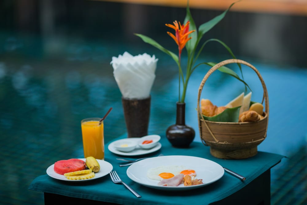 We are a couple staying for four nights. We arrived early in the morning and picked up by the tuk tuk. we received a welcome drink and a cold towel. The room is huge and clean. The food is very delicious and I would say the best we had in our trip. Staff are very nice and always smiling when greeting us. They also gave us a complimentary massage which is of very high quality. On Valentine's Day the hotel prepared a rose for me which is very sweet for them.