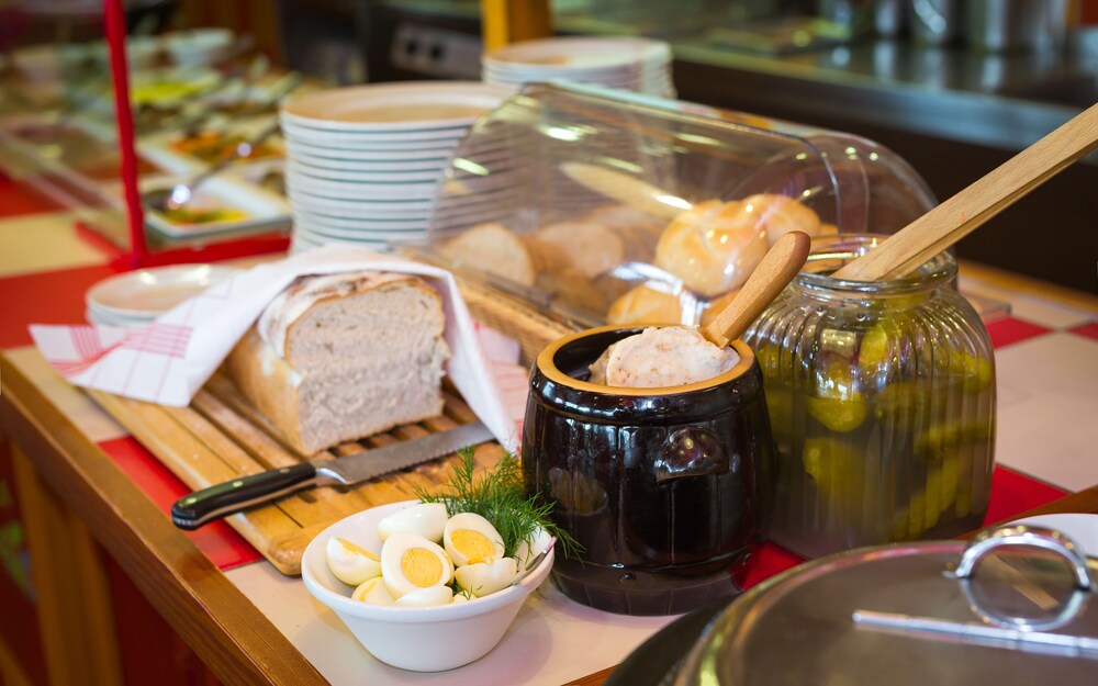 Specyficzna organizacja śniadania, w ogólnie dostępnej restauracji przy parkingu. Brak informacji o zasadach korzystania. Produkty za szybą, choć dostępne w ramach kuponu na śniadanie. W samym hotelu wszystko ok. Na jedną noc polecam.
