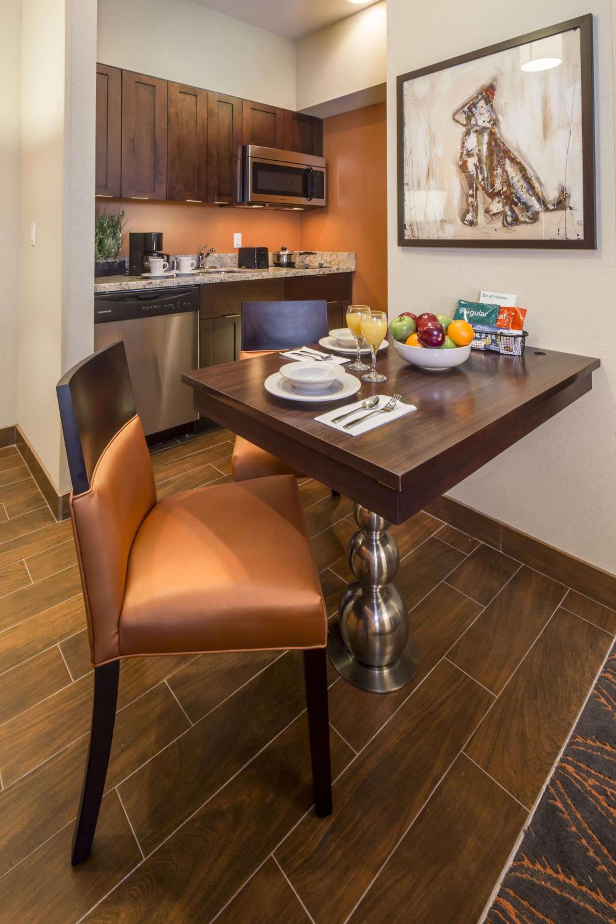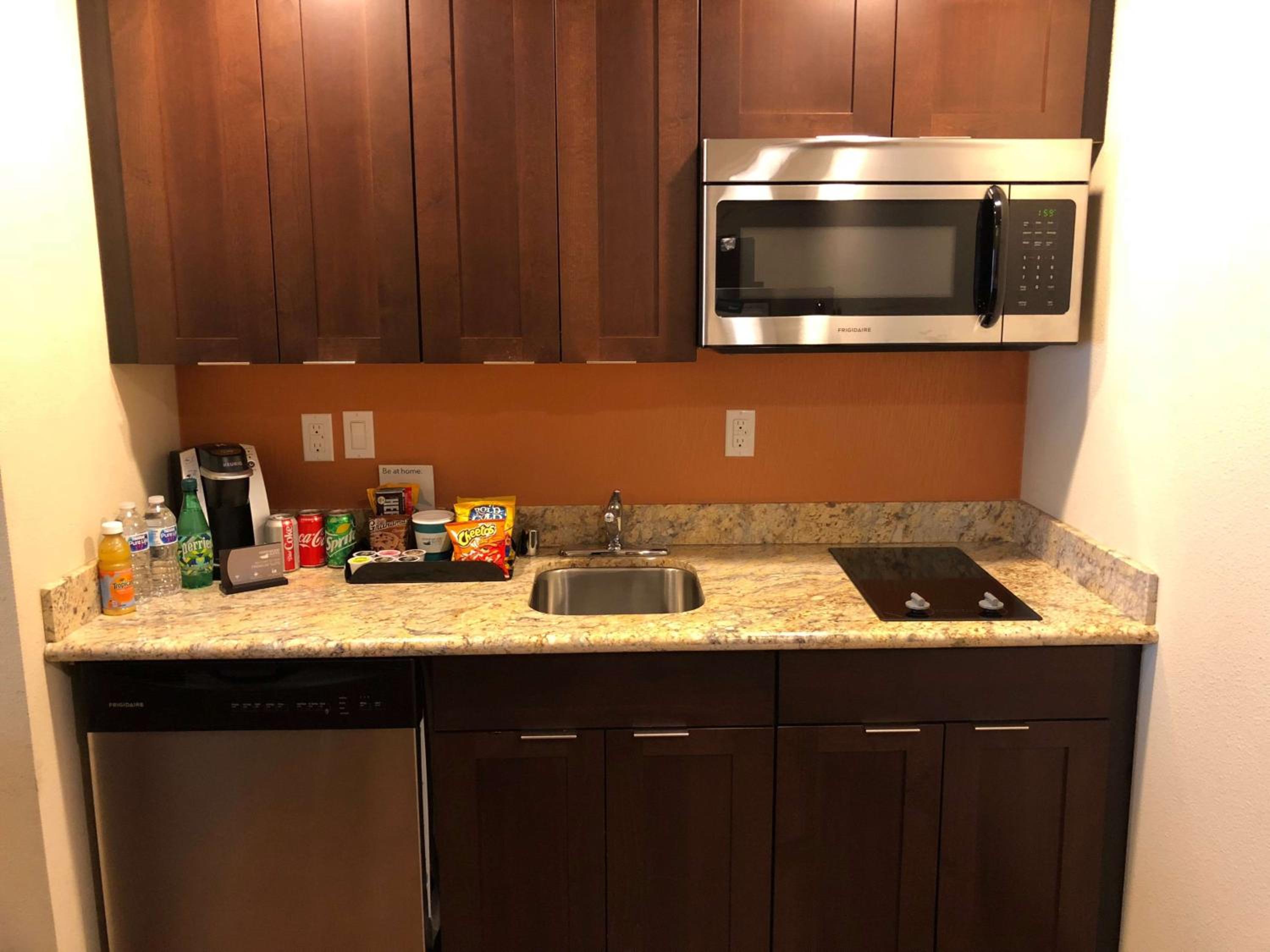 The front desk receptionist was scattered and unprofessional at check in. The dishes in our hotel room were dirty on arrival.