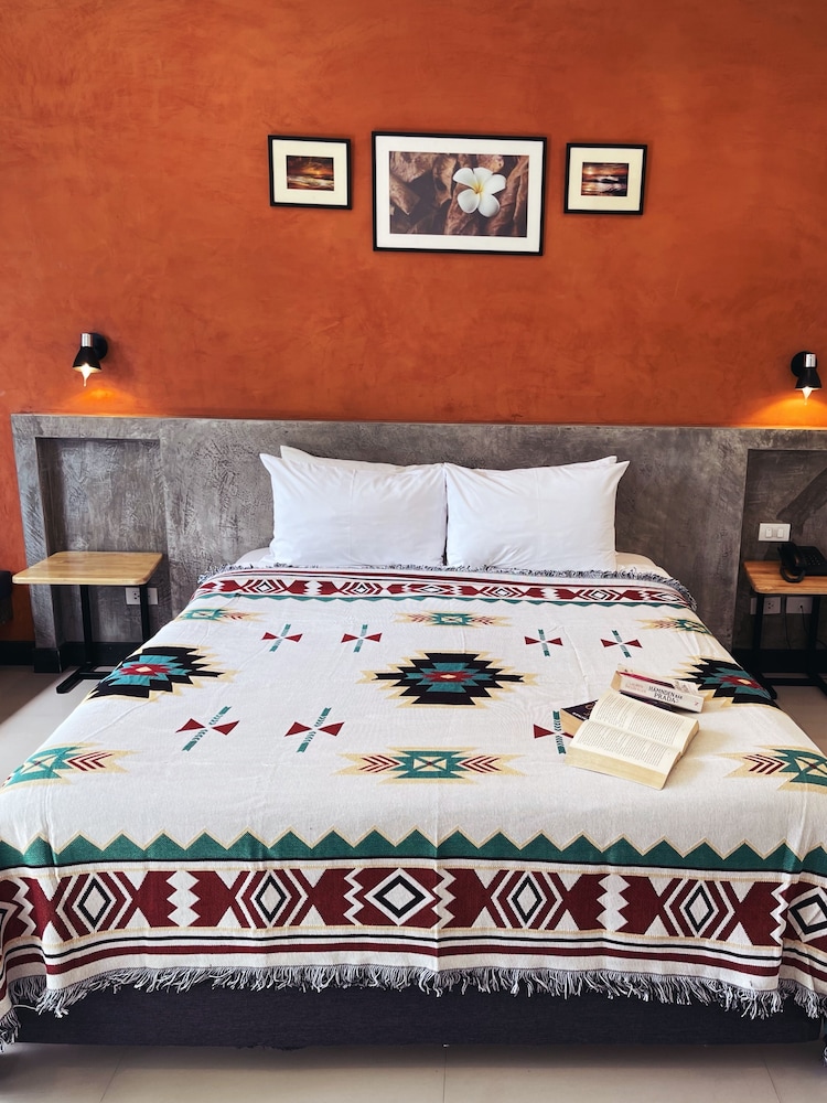 We stayed here for 10 days and felt very at home. The owner is lovely and very responsive, checking that we had everything we needed. The bed is HUGE and everything feels fresh, clean and comfortable. The greenery around the rooms and at breakfast makes it feel like a little nature haven ...waking up to birds singing outside the window was great! Staff are very helpful and breakfast is a buffet style with fresh fruit, cereal, toast and eggs made to order as you prefer. The wise old hotel dog Hulek sits quietly next to you while you eat and it's a serene start to every day. Good massage place opposite and a local shack style restaurant a few metres to your right (after the small supermarket) is a great family run lunch takeaway. To your left you find a shaded path leading to the beach (watch out for passing motorbikes), which is only a few minutes walk and there you find a row of smoothie stalls and street food vendors. We tried several - roti ladies and the family run food truck to their right (Yao seafood I think it was called) served tasty food with big smiles. The beach has plenty of trees for shade and the waves were brilliant for body boarding. Ideo is a fantastic boutique style hotel with the perfect 'make yourself at home' feel with all the amenities you would need. Great a/c, good shower with free toiletries, mini fridge, microwave and some crockery to use with the small table. We found that so useful for eating our takeaways in the coolness of the room when it felt too hot to eat outside. In all Ideo was the ideal place for us to experience Thai hospitality and comfort. Thank you kha to Mon and her team