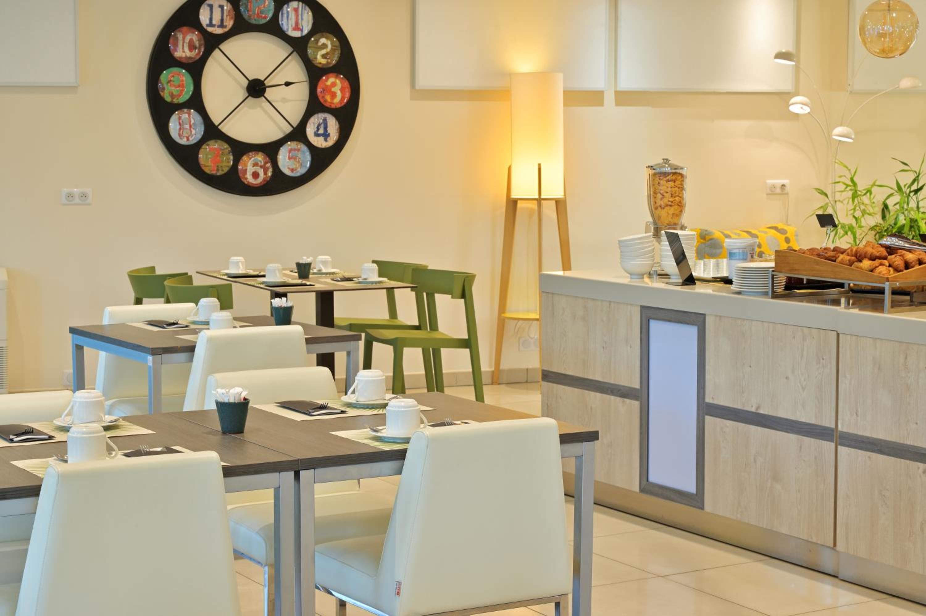 Pas réellement de décoration, bar et restaurant fermés le soir, baignoire et pas douche, pas de mini bar et de cafetière.