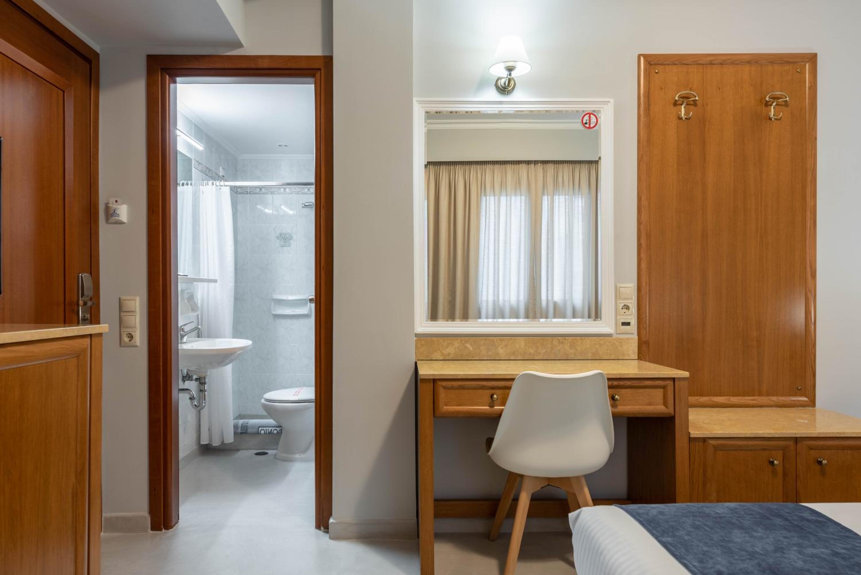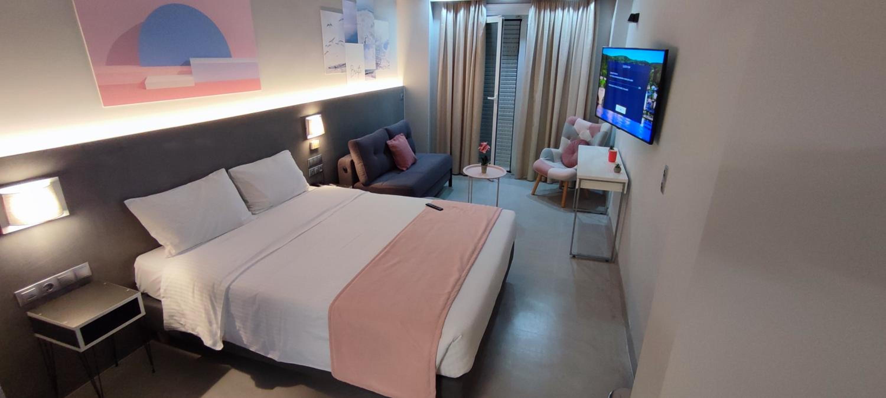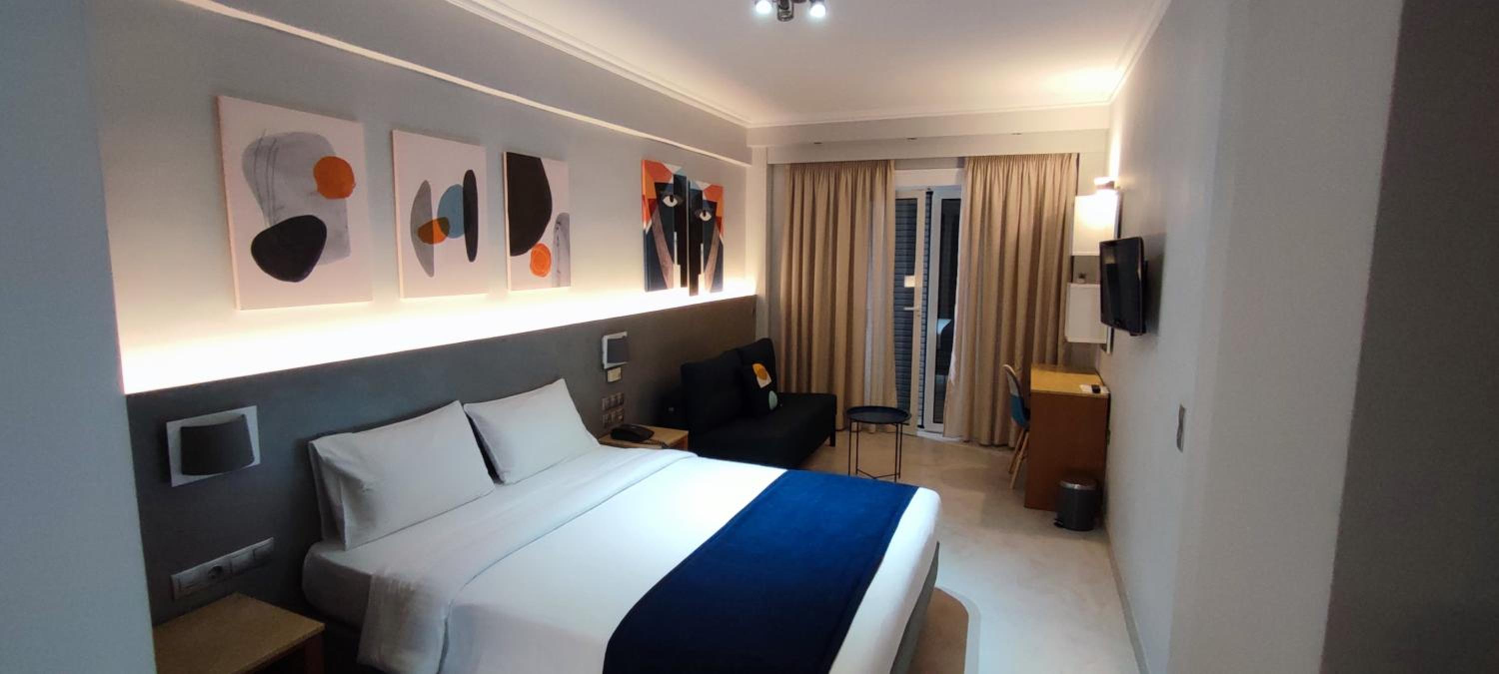 It was a nice and cozy room with very friendly staff. Located conveniently close to the port and the metro stop but still a bit secluded. The room had a lovely balcony. The breakfast was good and had quite a variety but it would’ve been helpful to have little signs saying what is what.