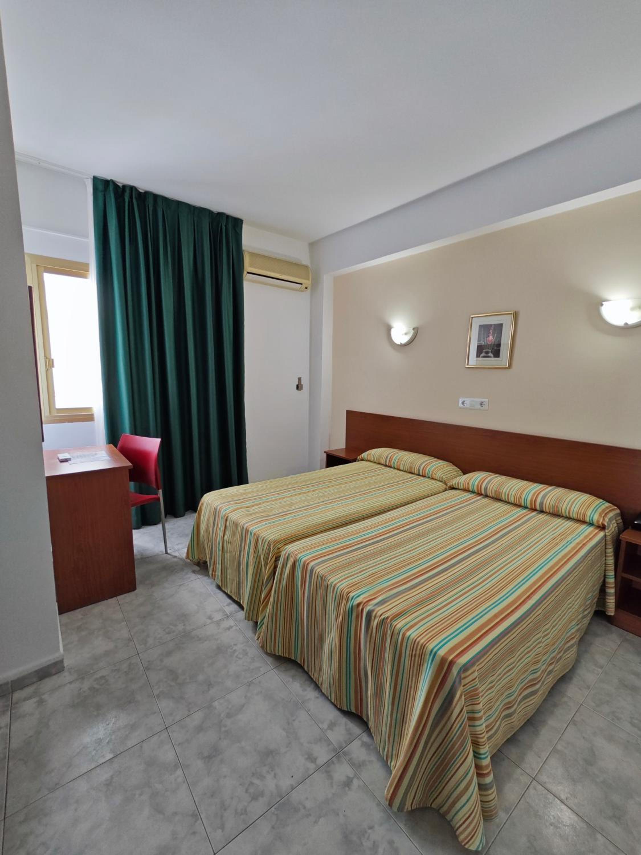 Céntrico, a 5 minutos andando de la playa. Desayuno correcto. Cena buena. Empleados agradables. Piscina pequeña pero suficiente. Habitación limpia. Mucha luz natural.