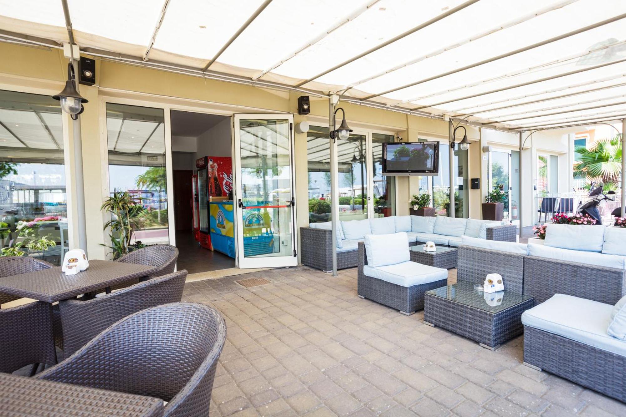 Indulge in drinks and snacks at the on-site bar, or take advantage of discounts for the private beach just steps away. Explore nearby attractions like the Le Navi aquarium and the Misano World Circuit.