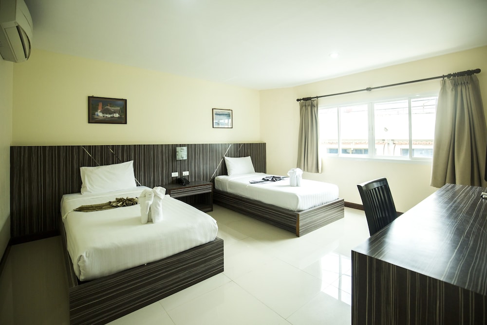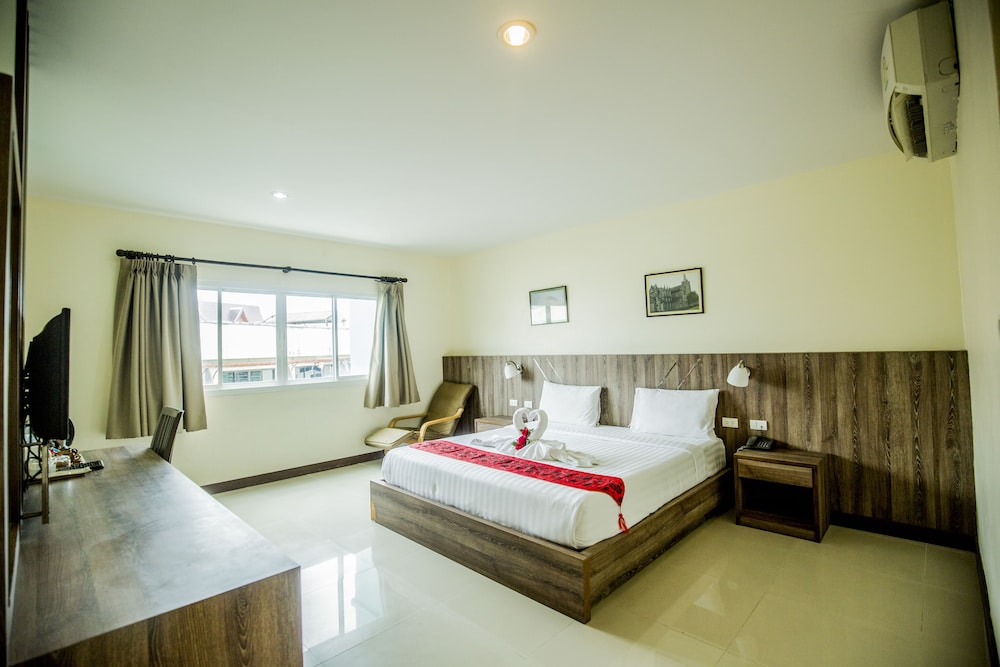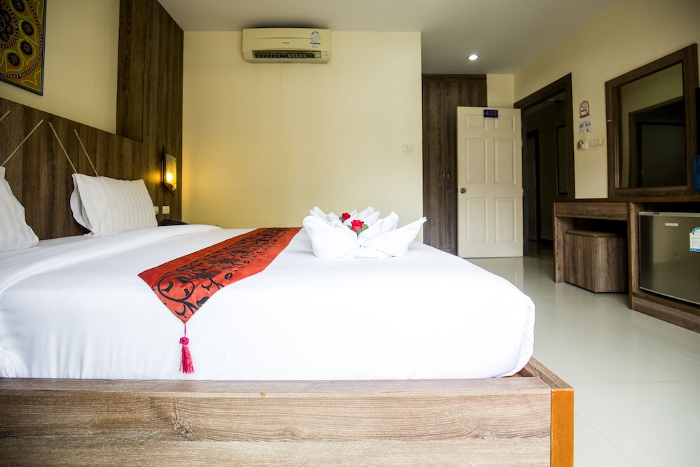 Flott hotell med ypperlig beliggenhet 700 meter fra Hard Rock Cafe og 1200 meter fra Big-C og kjøpesenteret. Rett ut på veien og så er man på vei direkte til Karon og KATA Beach. Kan ikke få det bedre, og akkurat den plasseringen som jeg elsker i Patong, med kort vei opp til Nanai Rode. 2000 meter til Bangla Rode...Hotelet var rent og fint. Rommene hadde Flatskjerm TV med 40 kanaler, herunder europeisk, Australsk og Amerikansk. Internett 5G, telefon til reseptionen, kjøleskap og en dusj der vannet har trykk og vannet renner ned i sluk. Nei det er ikke noe overdådig luksus, men når man sammenligner pris og komfort så blir dette en høy scoore fra meg. Jeg valgte rom uten vindu fordi jeg er lite på hotellrommet ca. 8 timer om døgnet og mest fordi jeg ikke vil å mygg inn på rommet. Aircondishener funket utmerket og det aller viktigste av alt. Senga og trekkene ble byttet på HVÆR DAG. Gjester på rommet ingen problem hverken verbalt eller økonomisk så fremt man ikke oversteg antall sengeplasser på rommet. Til den nette sum av 220 Norske kroner eller 25 USD pr natt så blir det garrantert et eller flere besøk på dette flotte hotellet med eksemplarisk serviceinnstilt betjening... :-)😀😀😀😀😀😀