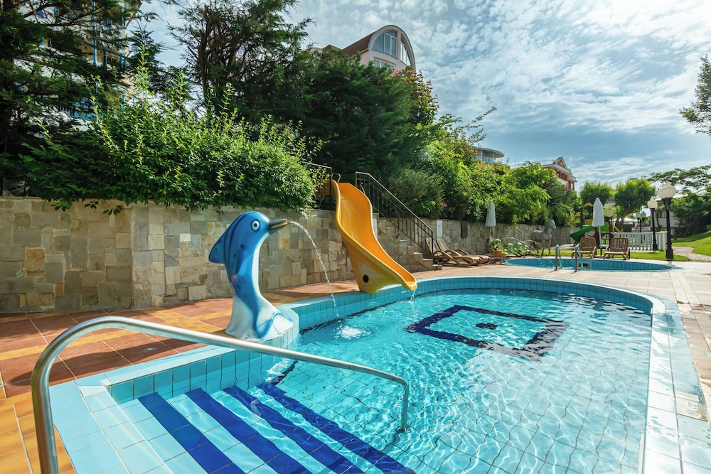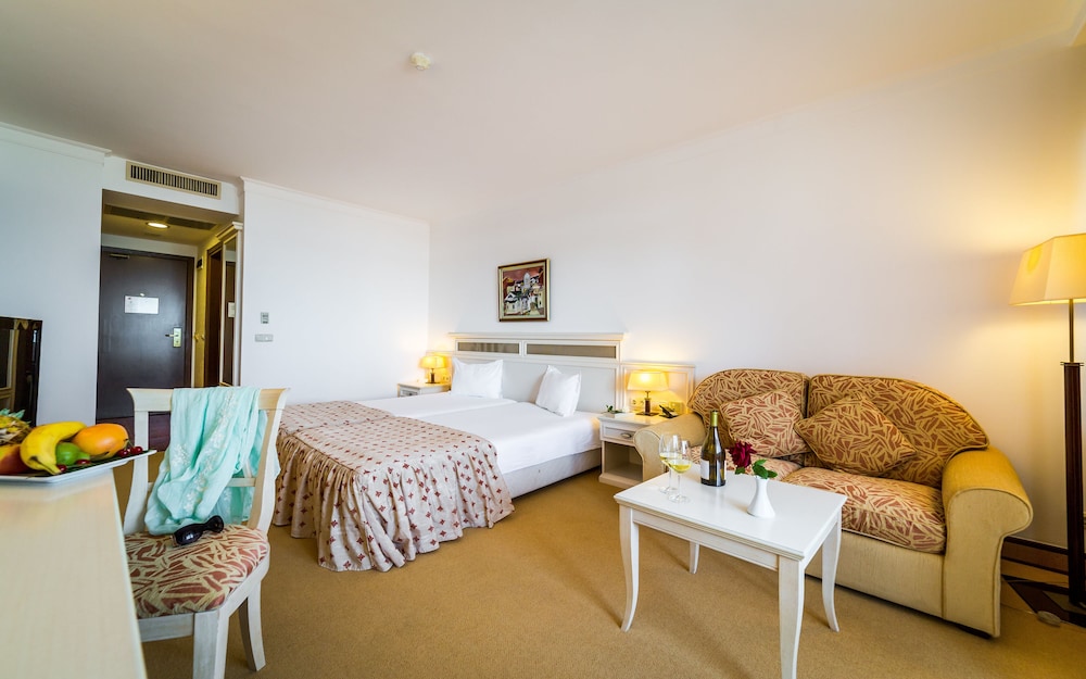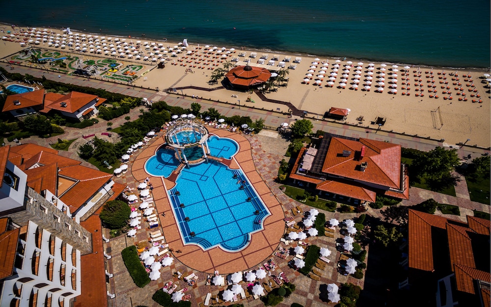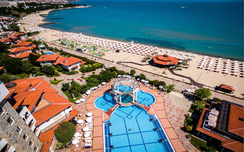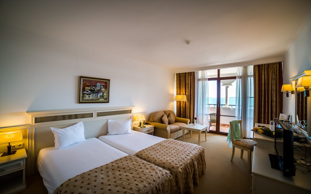 The hotel is very run down. Staff was nice but this hotel is a 2 star on every level. Pool was not heated so nobody would swim. The halls have no ac so boiling. Sunny beach is a fun place but it is a dump. The food is gross except for the fish restaurant that is not part of the deal. That place is great. Buffett is sub par. Anyone who says the food is good is nuts.