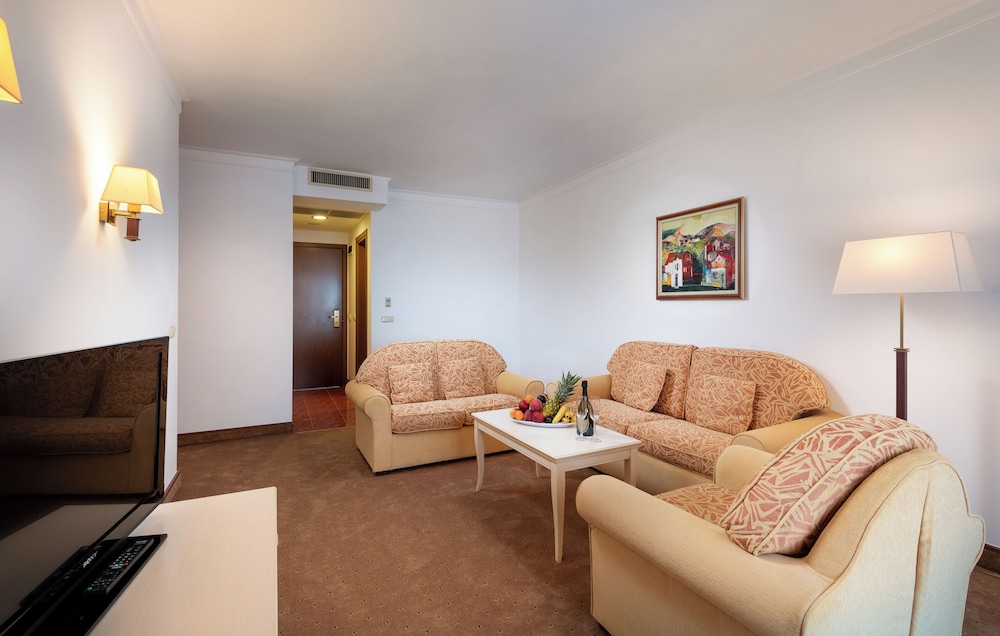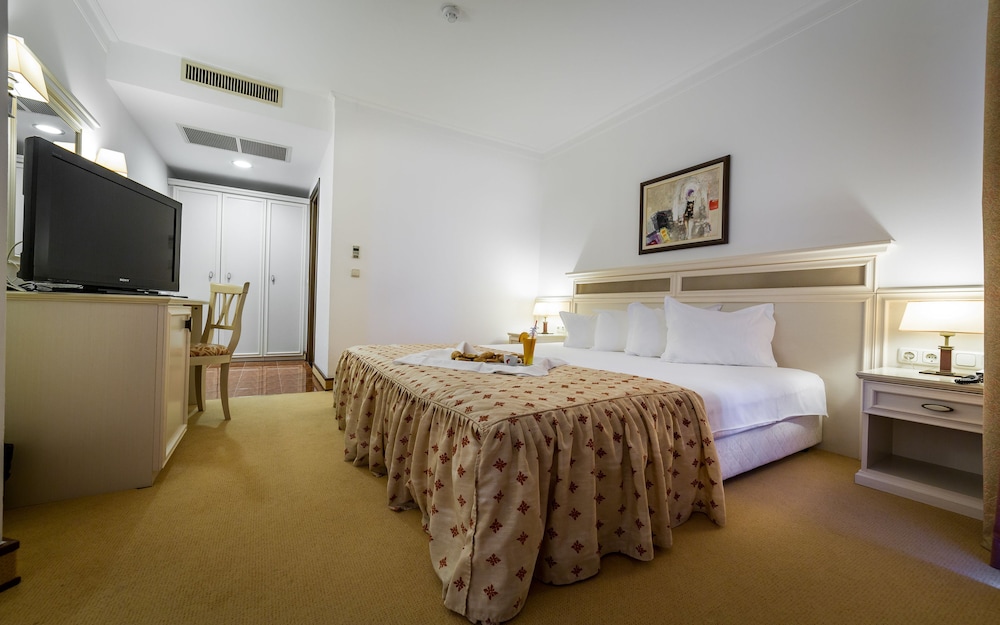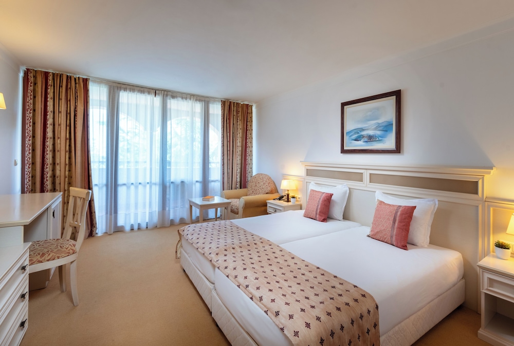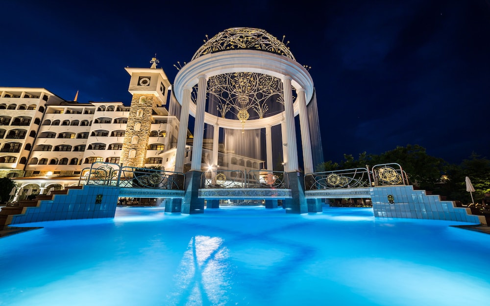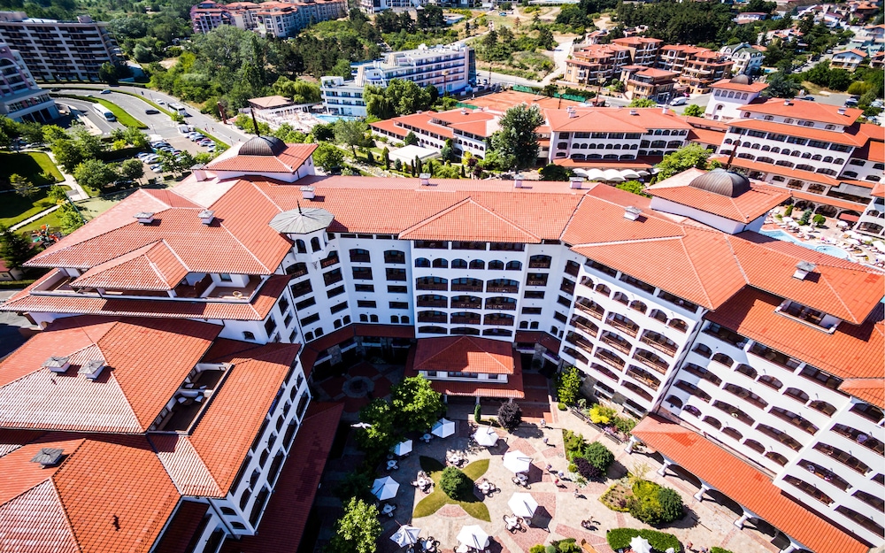 The hotel is very run down. Staff was nice but this hotel is a 2 star on every level. Pool was not heated so nobody would swim. The halls have no ac so boiling. Sunny beach is a fun place but it is a dump. The food is gross except for the fish restaurant that is not part of the deal. That place is great. Buffett is sub par. Anyone who says the food is good is nuts.